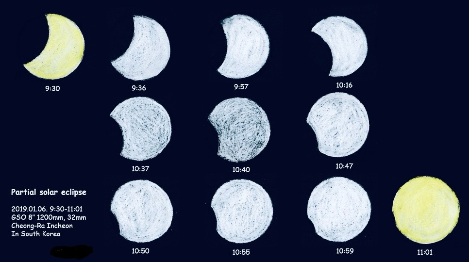 아무튼 당시 어떻게 그리 용감했는지 모르겠지만 그렇게 어설프게 만든 태양 필터로 원 없이 부분일식을 관측할 수 있었다.