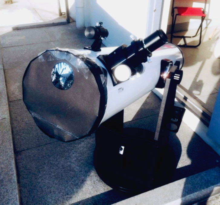 과거에도 8인치 돕소니안으로 부분일식을 관측한 적이 있다. 그때는 손바닥만 한 태양필터를 잘라서 자작 뚜껑을 만들었는데 이제는 돈으로 제작된 필터를 산다.(플렉스!) 참고로 본인이 사용한 필터는 태양관측 전용 필터이며, 셀로판지나 유리 그을려서 태양 바라보시는 분들은 실명 위험이 있으니 정말 정말 주의해야 한다. 그리고 접안렌즈에 태양필터 붙이는 분도 있는데… 정말 큰일난다. 절대로 대물렌즈 후두부에 필터를 부착해야 한다. (잔소리는 여기까지)