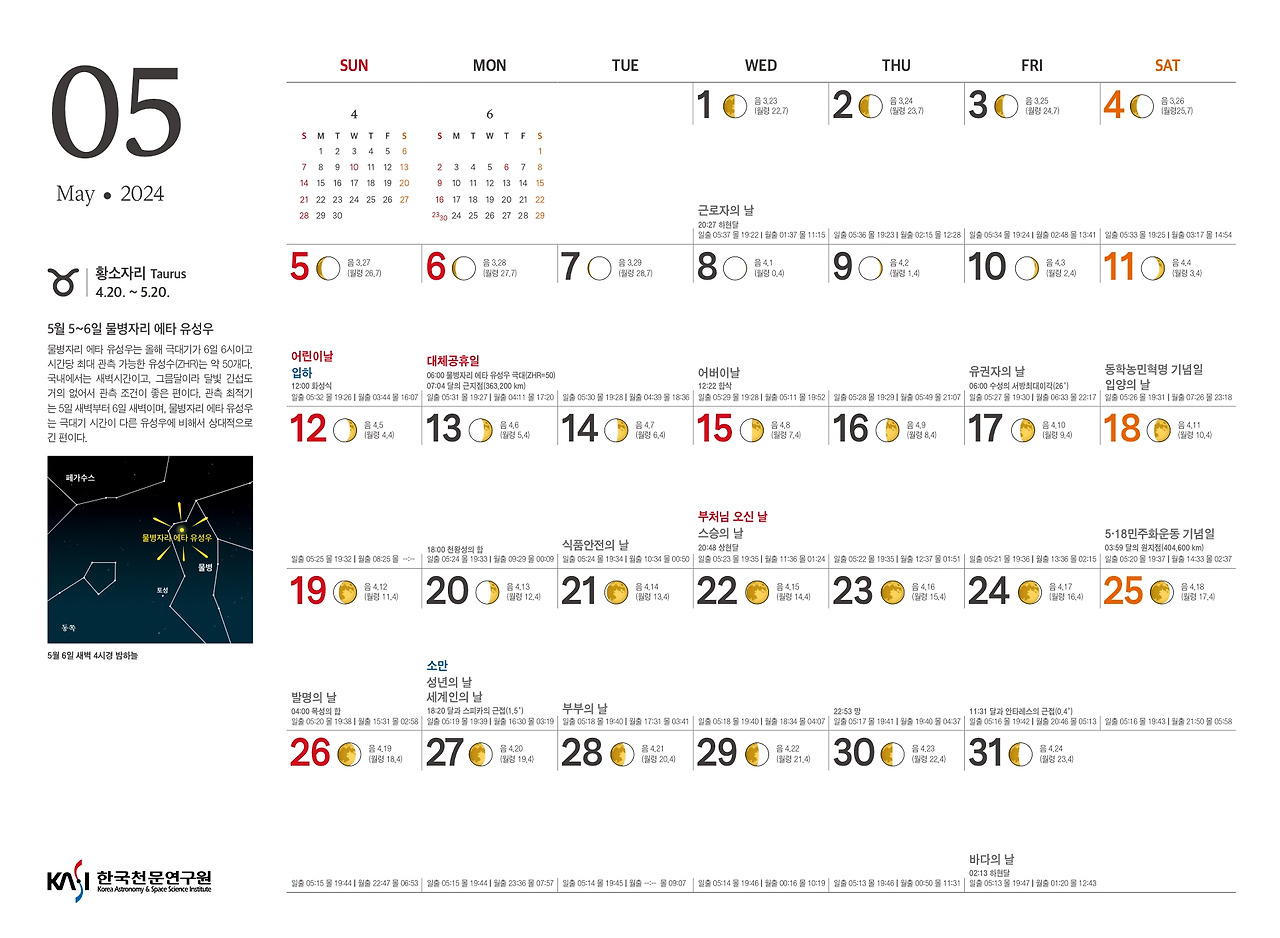 달이 뜨고 지는 시각은 정해져 있는데 별을 보는 사람이라면 달이 언제 뜨고 지는지 항상 숙지하고 있어야 한다. 때문에 한국천문연구원에서는 매년 월출과 월몰, 달의 위상 변화, 천문 이벤트를 담은 천문력을 발행하고 있다.