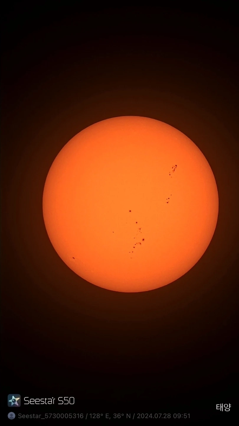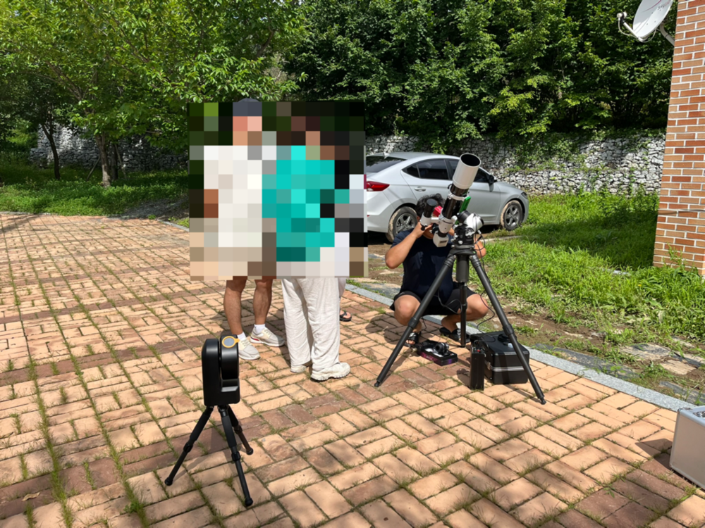 밤에는 구름이 내내 끼어서 비싼 수제주(스)를 홀짝이다 아침에 드디어 망원경을 펼쳤다. 좌측이 조그만 씨스타, 우측이 태양전용 망원경인데 씨스타가 가격대비 성능이 매우 좋다.
