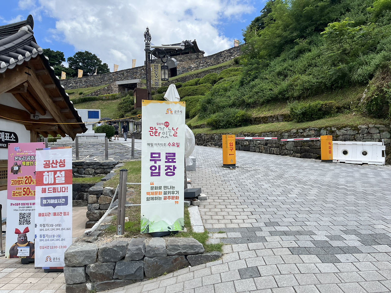 유네스코 세계 문화유산으로 지정되어 있는 공산성. 입장료는 3천 원인데 매달 마지막주 수요일은 무료 관람이다.