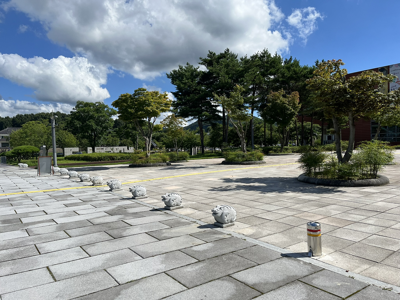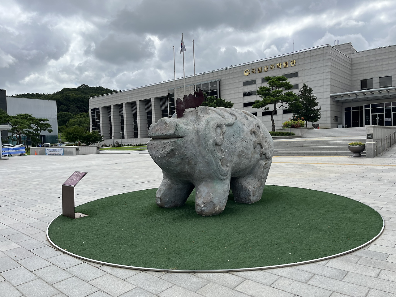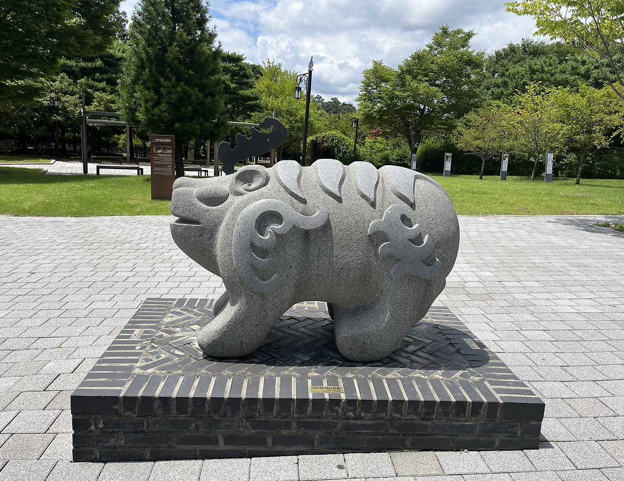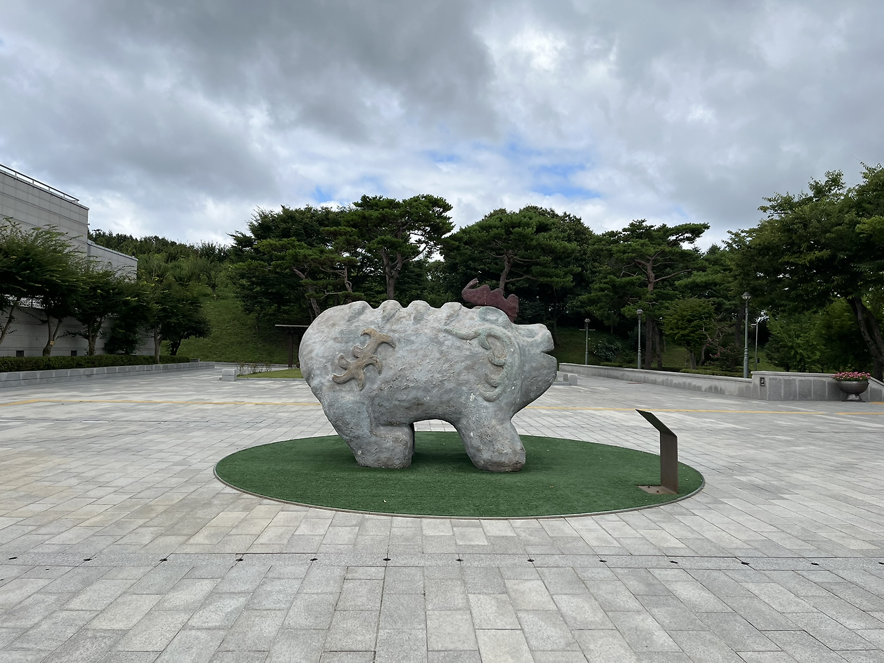다른 박물관이나 건물들 앞에도 진묘수석이 많이 보인다. 보일 때마다 찍어 두었는데 디자인이 참 현대적이다.