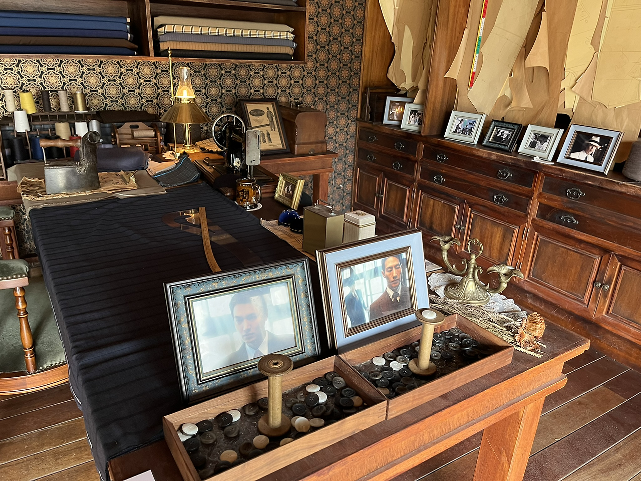 다음은 애기씨 신발 맞추던 양장점 들렀는데 닫혀 있어서 옆집 양장점에 들렀다. 여기는 파친코의 이민호가 들렀던 양복점이다. 한수와 이삭 사진이 걸려 있는데 확실히 한수가 내 타입…(유부남만 아니었어도..!)