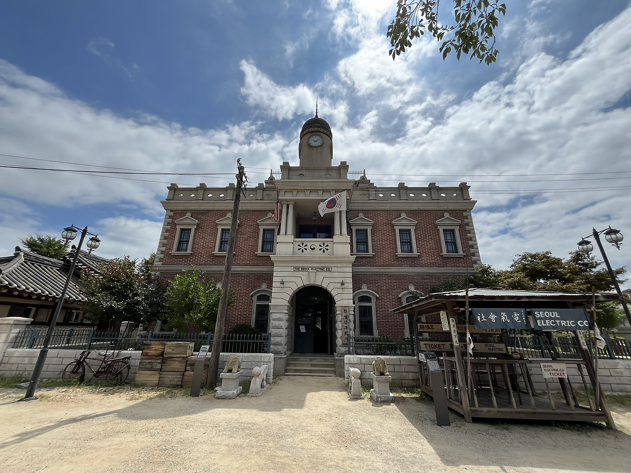 다음으로 글로리 호텔 다음으로 큰 건물인 한성전기회사에 들어가 보았다. 당시 미스터 션사인에 전기와 전차가 들어온 시점이니 당연히 한성전기회사가 들어온 시점이지만 드라마 상에서는 한 번도 나오지 않았고 다른 영화 세트장으로 쓰였던 것 같은데 내부는 카페로 되어 있다. 참고로 션샤인 랜드 근처에 카페 비슷한 건 여기밖에 없으니 션샤인 랜드에 오실 분들은 음료와 간식을 잘 챙겨 오기 바란다.(양산도!)