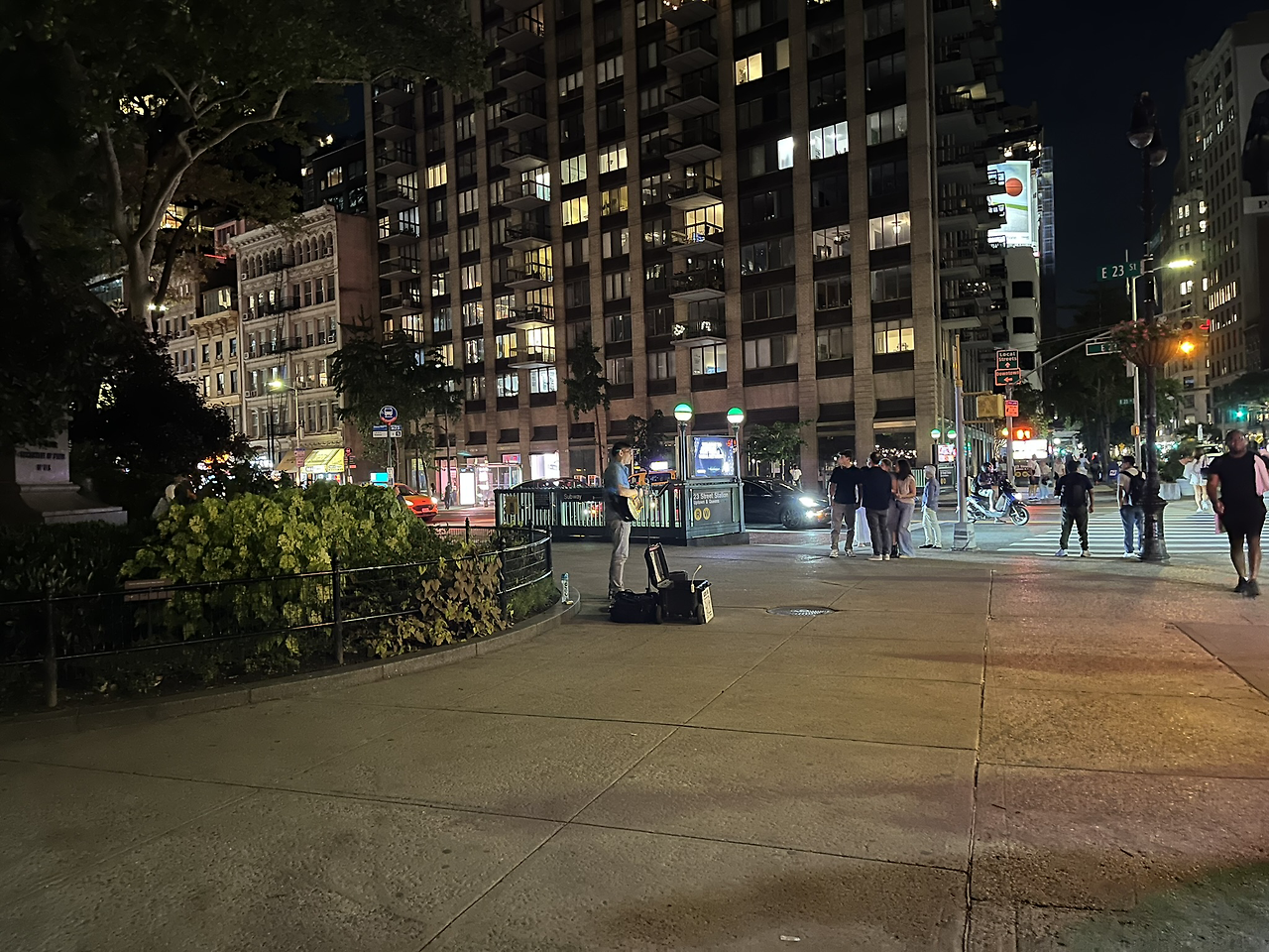 뉴욕의 열차는 한국에 비해 복잡해서 길을 헤매다 밤 10시쯤 맨해튼에 있는 숙소에 도착했다. 숙소 앞에 큰 식료품점이 있는데 딱 10시에 문을 닫아서 물을 사러 멀리 편의점까지 걸어갔다. 맨해튼은 정말 도시 그 자체인데 중간중간 공원이 있어서 시민들의 좋은 휴식공간이 되어 준다. 공원마다 누군가 공연을 하고 작은 펍이 열려서 사람들이 야식을 즐긴다.