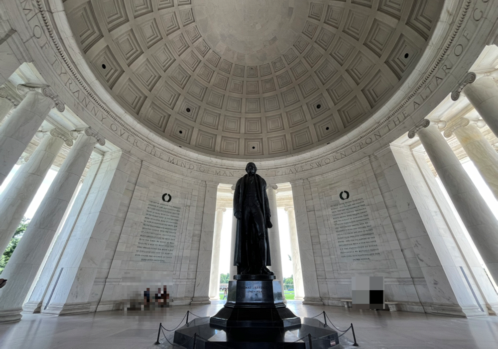 다음은 토마스 제퍼슨 기념관인데 이 분은 미국의 3대 대통령이라 한다. 토마스 제퍼슨은 미국의 엄청난 천재라서 7개 국어를 구사하고 건축학에까지 조예가 깊어서 미국 워싱턴의 건축 양식에 큰 영향을 미쳤다고 한다.