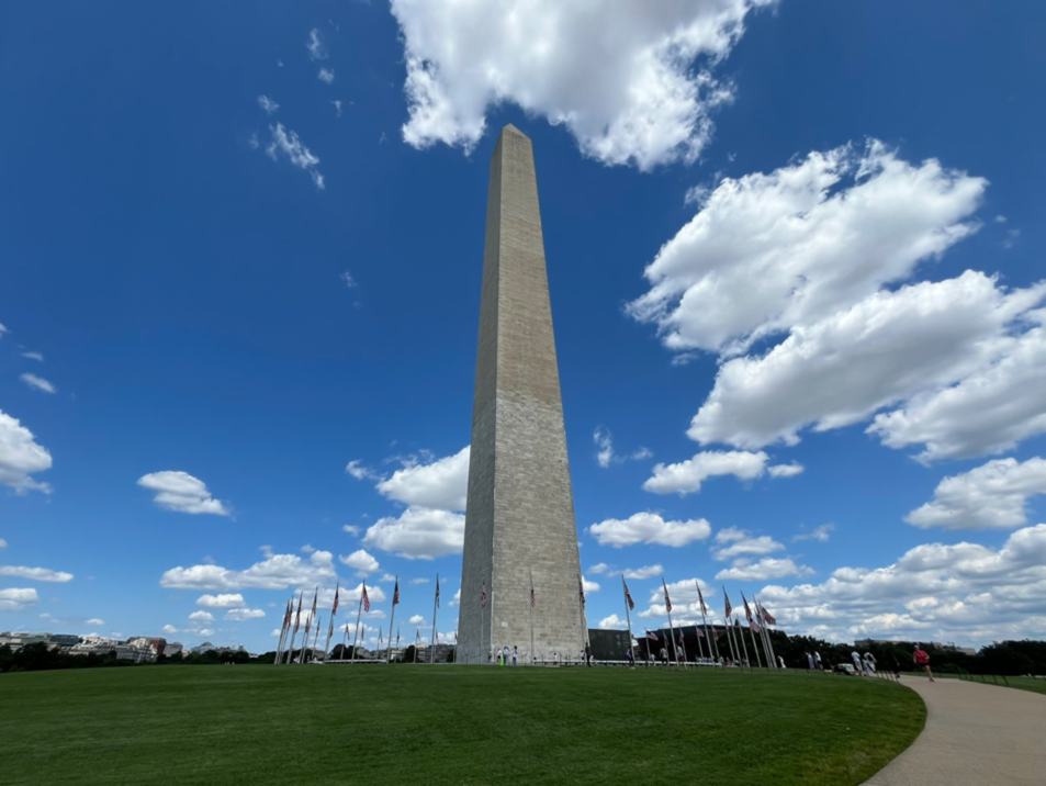 중간에 뷔페에서 배를 채운 후 먼저 워싱턴 기념탑(Washington Monument)에 갔다. 워싱턴 기념탑은 미국의 초대 대통령 조지 워싱턴을 기리기 위한 기념탑으로 에펠탑이 세워지기 전까지 가장 높은 건축물이었다고 한다.