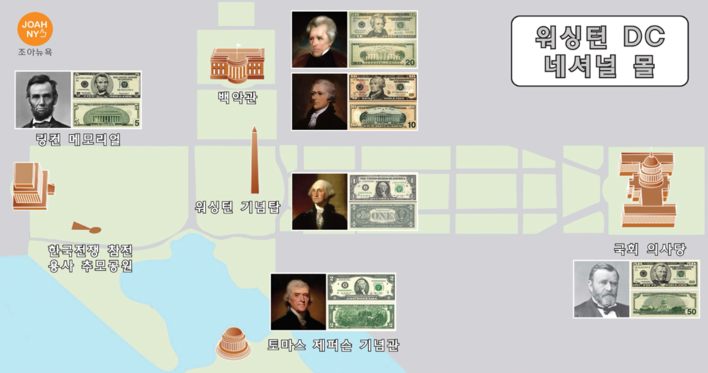 오전 이른 시간에 뉴욕 맨해튼의 한 카페 앞에서 흰색 벤을 타고 출발하였다. 워싱턴으로 가는 동안 미국의 역사와 역대 대통령들, 그리고 워싱턴 DC 내셔널 몰에 대하여 설명을 들었다. 미국의 역사는 자유를 쟁취하기 위해 열심히 달려온 것 같다. 그리고 그 흔적은 워싱턴뿐 아니라 미국의 지폐에서도 고스란히 찾아볼 수 있었다.