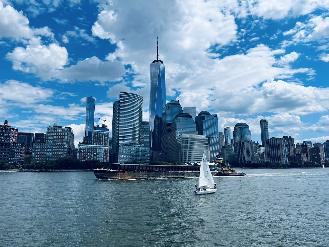 자유의 여신상 투어는 주로 배로 이루어지는데 허드슨 강에 배를 타고 내려가면서 보는 뉴욕의 풍경이 무척 아름다웠다.