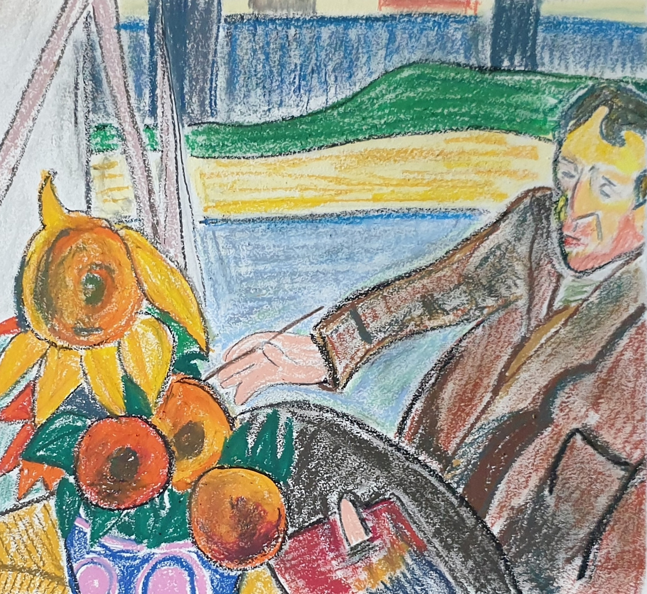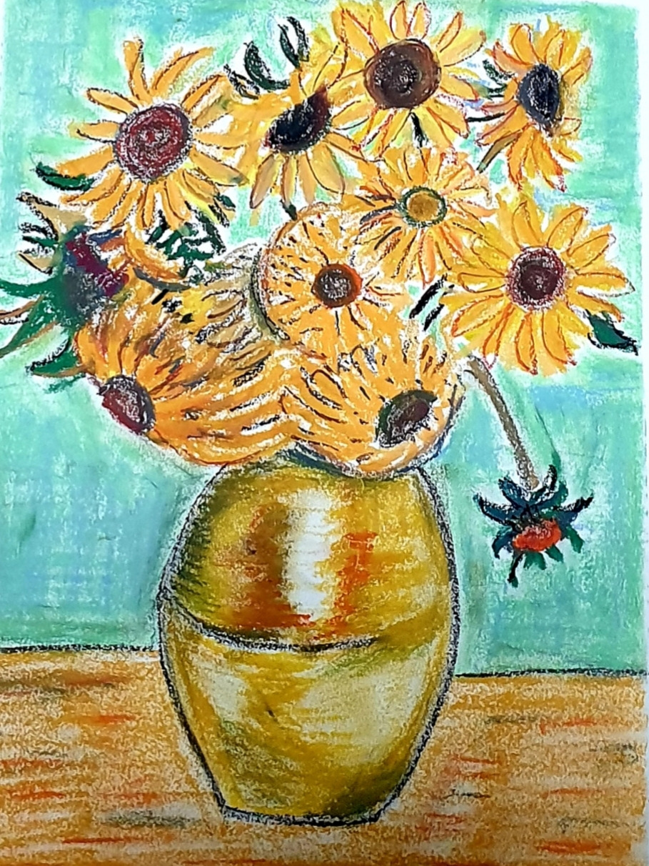 그림에 담긴 시간과 이야기를 알면 그림은 그냥 명화가 아니라 사람들의 이야기로 보인다. 그래서 또 어설프게 고흐의 '12송이 해바라기'와 고갱의 '해바라기를 그리는 고흐'를 그려보았다.