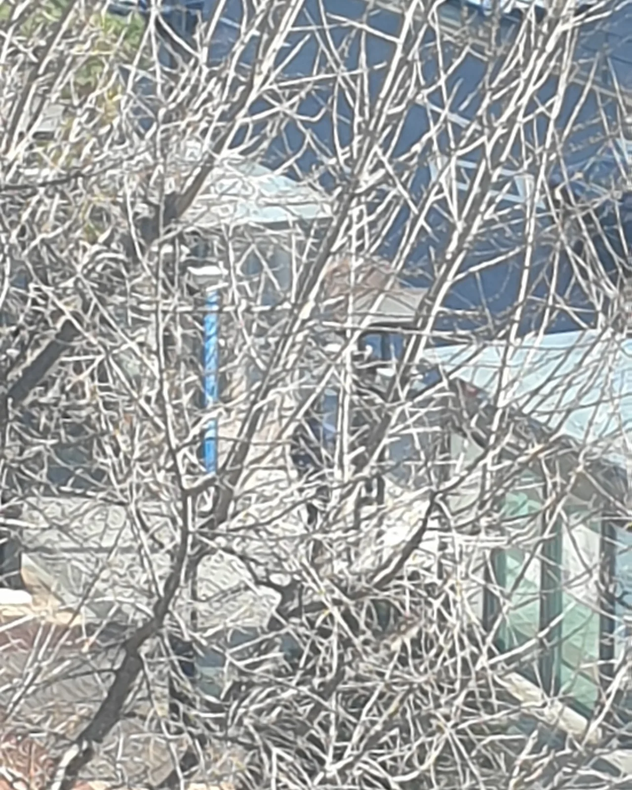 나무 가지와 거리가 유난히 하얗게 찍혔다.