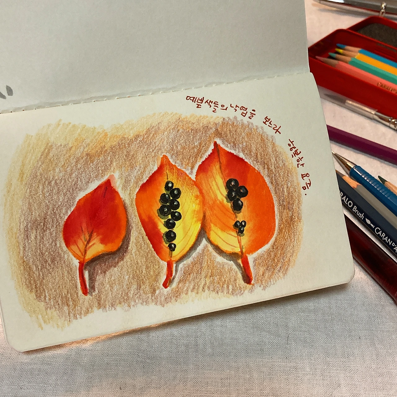 방금 떨어진 낙엽이 너무 예뻐서 집에 가지고 오면