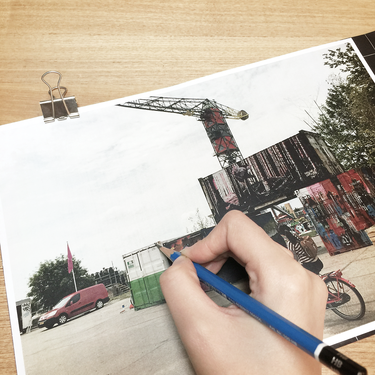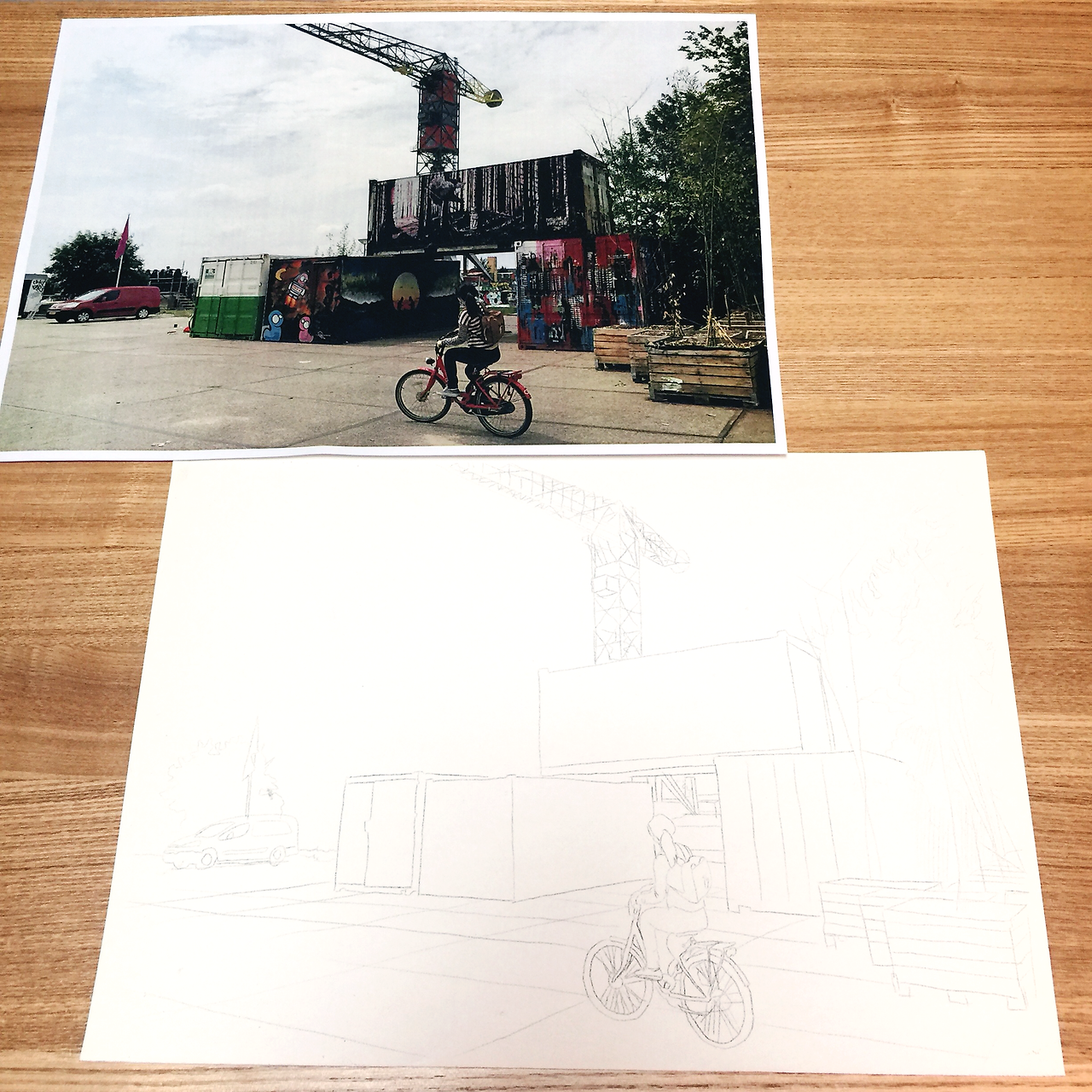 * 그리다가 삐뚤어지지 않게 사진+먹지+종이를 잘 고정해준다. (나는 집게를 썼다.)