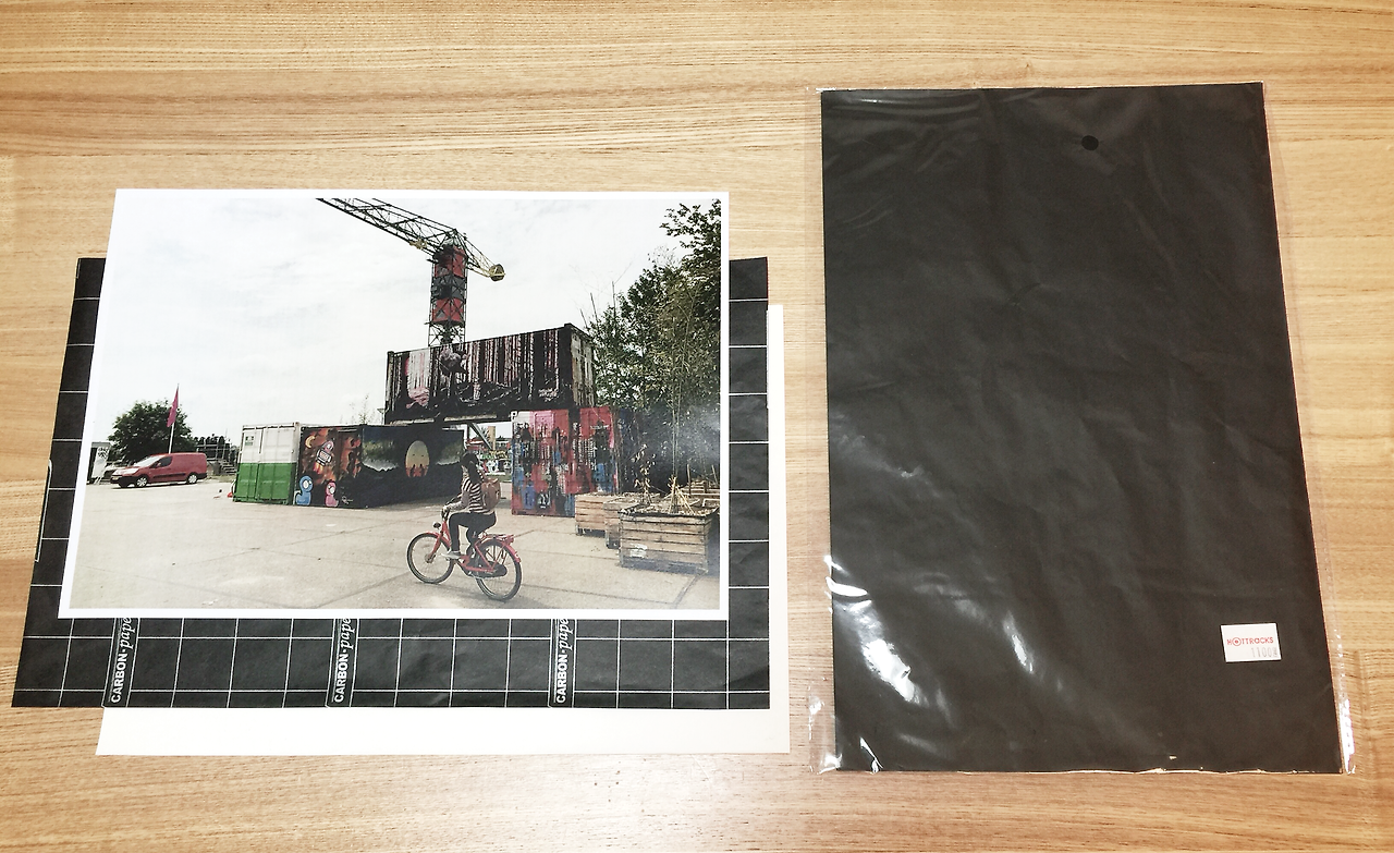 1. 준비물이 구비되었으면 종이에 먹지를 대고 그 위에 사진을 올린다.
