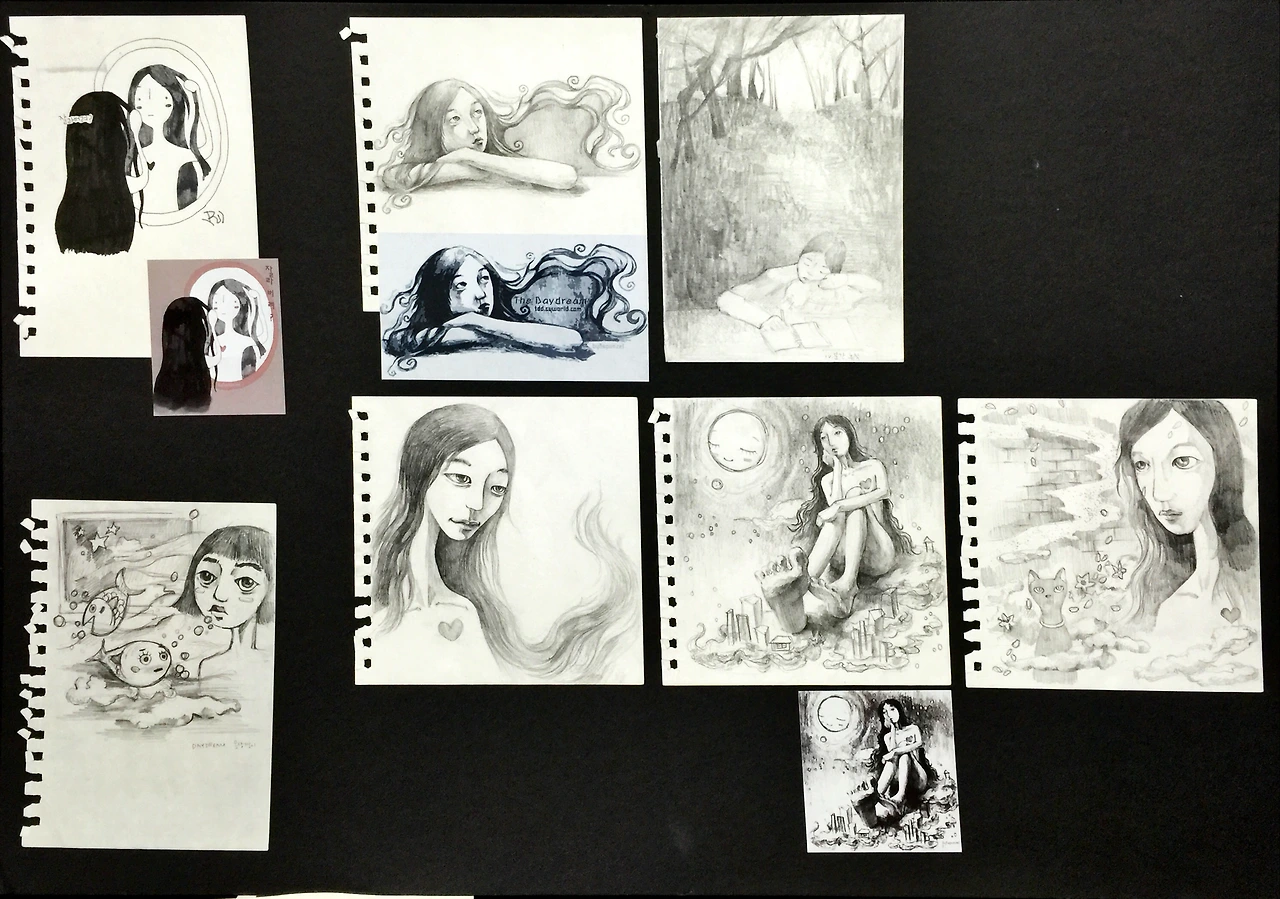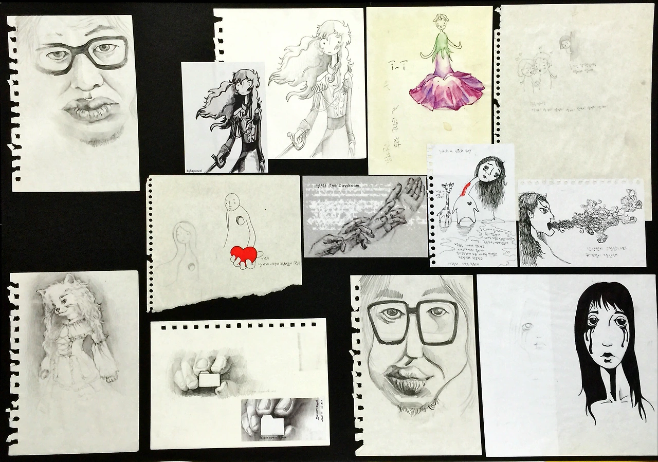 미대 입시와는 별개로 사적인 감정의 표현 수단으로 그림을 정말 많이 그렸다. 늘 스케치북을 들고 다녔고, 그래피티 초안도 많이 그렸고 그냥 그림 일기도 많이 그렸고 주변 친구들도 많이 그려줬다. 감정적으로 가장 예민했던 시기라 감당하기 힘들었던 사춘기 시절의 혼란도 그림으로 많이 남겼다. 미술학원을 다니며 만났던 친구들에게 많은 위로를 받았다. 친구들과 입시 미술 말고도 함께 그림을 많이 그리며 공유하고 의견을 주고받았다.