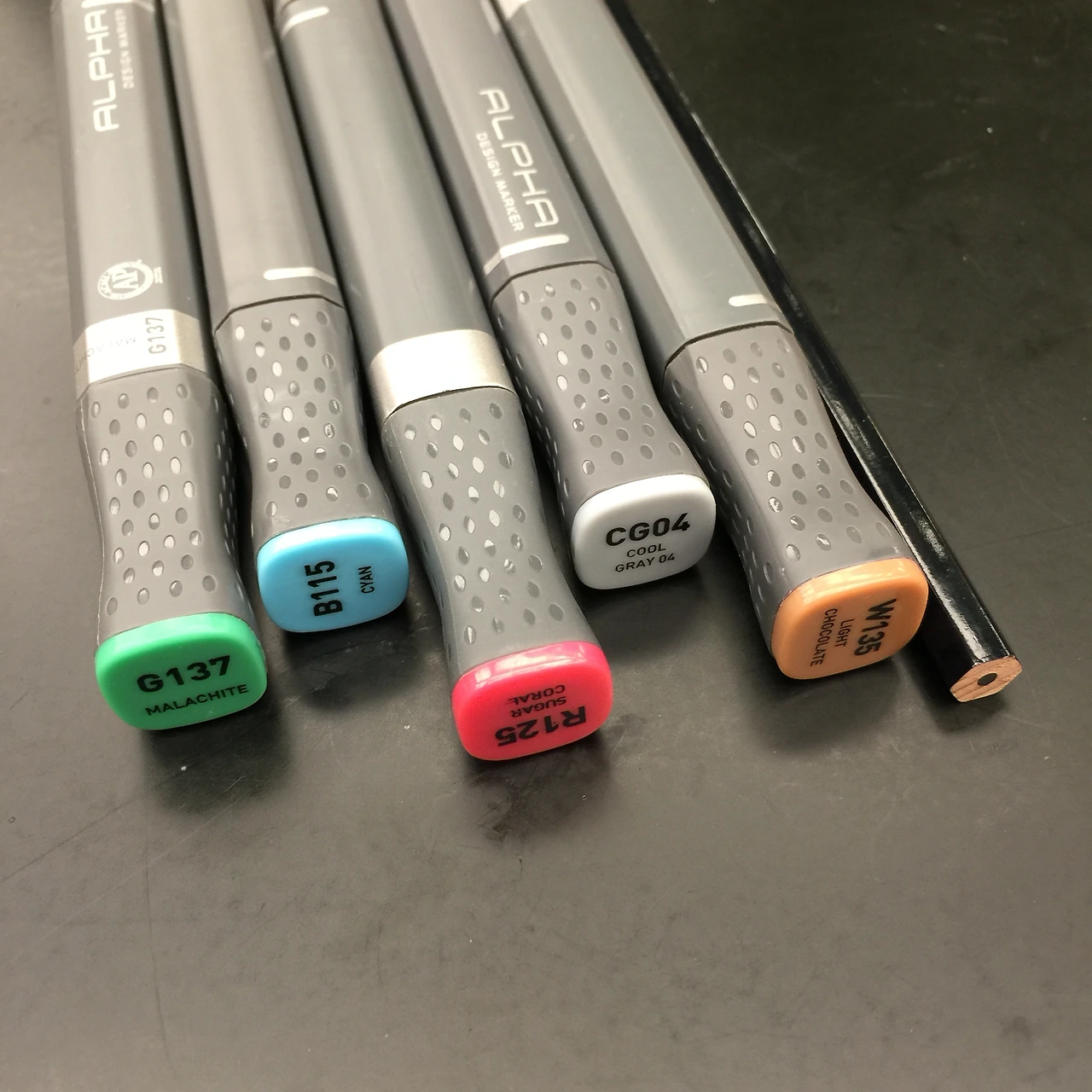 특정 브랜드를 언급하는게 좀 부담스럽기는 하지만, 아무 가이드도 주지 않으면 문구점 가서 좀 헤맬 것 같아서 약간의 팁만 주자면.. 코픽(copic) 마카를 제품 디자이너들은 많이 쓴다. 근데 좀 비싸다. 친구는 알파꺼 샀다. 코픽이 가격이 하나에 2만원대였던거 같고 알파는 하나에 7-8천원 정도 했었나. 써보니 가성비는 괜찮아 보였다.