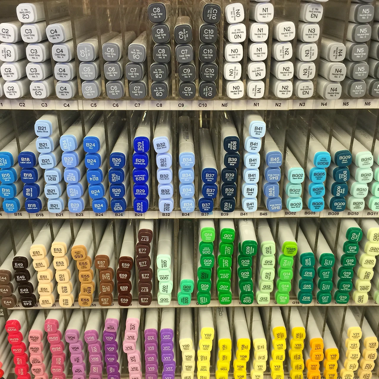 세트로 사거나 색깔별로 다 살 필요는 없다. 어두운 면을 잡아줄 수 있는 그레이 계열로 5~7번 사이에서 하나 사고 포인트 컬러 세 네개만 사는 걸 권한다. 나도 실제로 외출하거나 여행갈때 마카를 들고 갈때는 다크그레이, 블루, 그린, 오렌지 - 이렇게만 들고 다닌다. 아래 사진 중 오른쪽이 내 친구가 샀던 색상들이다.
