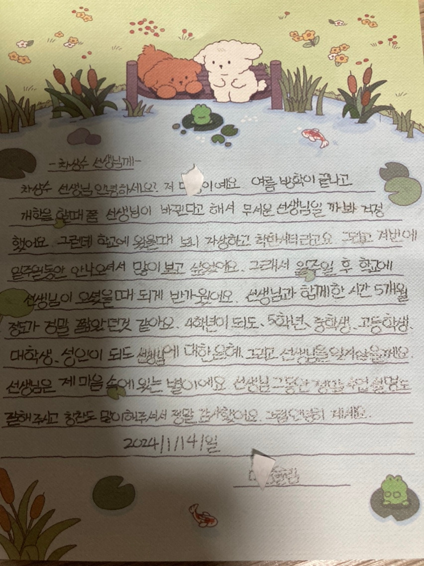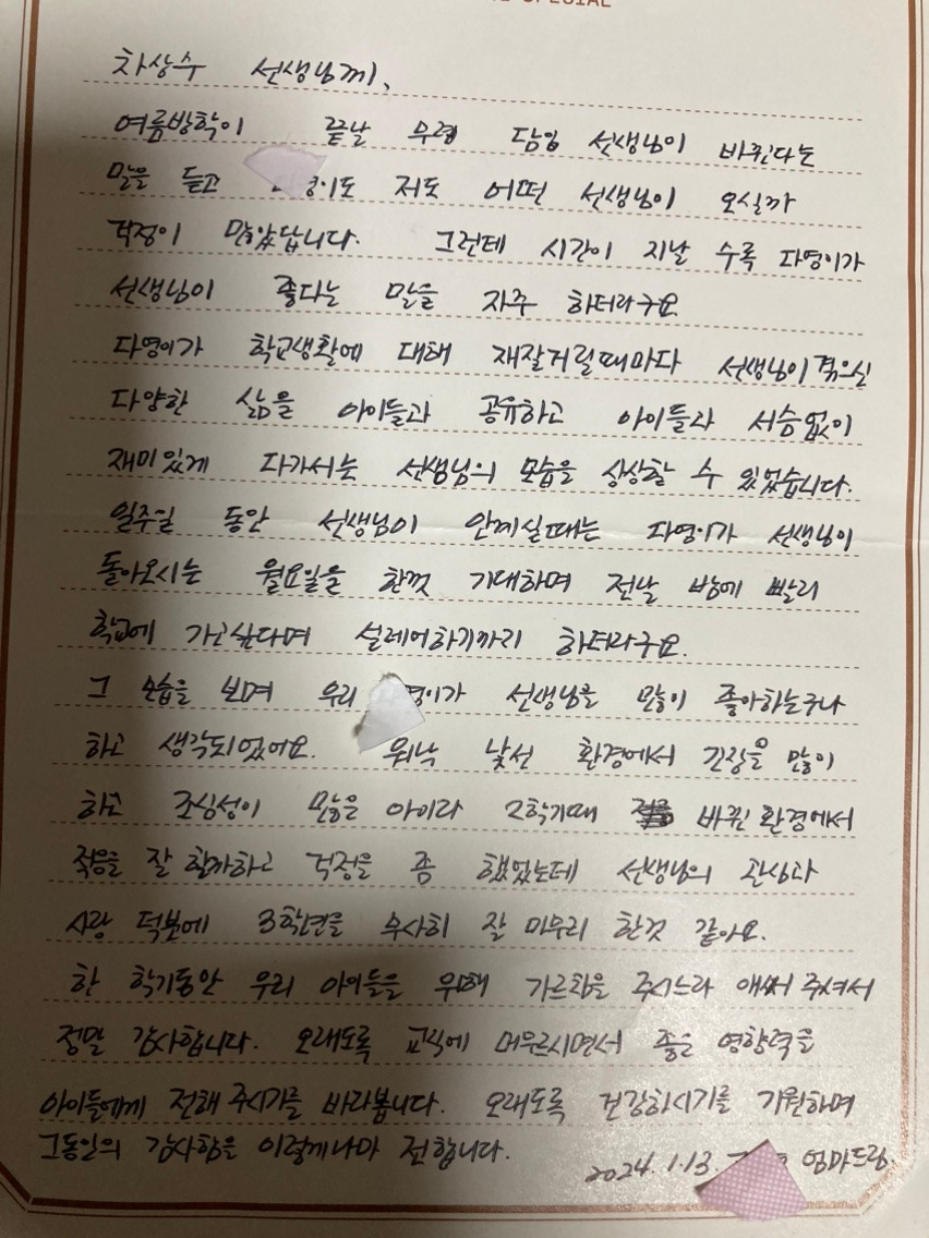 방학이다. 겨울방학이 시작됐다. 2023년 9월 1일, 30명의 학생들을 제주시에 있는 어느 학교 교실에서 만났다. 1명은 9월에 전학을 갔다. 처음 만난 날, 1학기가 지났건만 학생들은 학급 친구들의 이름을 거의 모르고 있었다. "야"라고 불렀고, 오히려 나에게 "저 애 이름이 뭐예요?"라고 묻는 학생도 있었다. 서로 관심 있는 학생들끼리만 이름을 불러주고 있었다. 그 모습은 나에게 충격이었다. 나는 2학기 담임교사로 학급 학생들과 5개월을 생활해야 한다.
