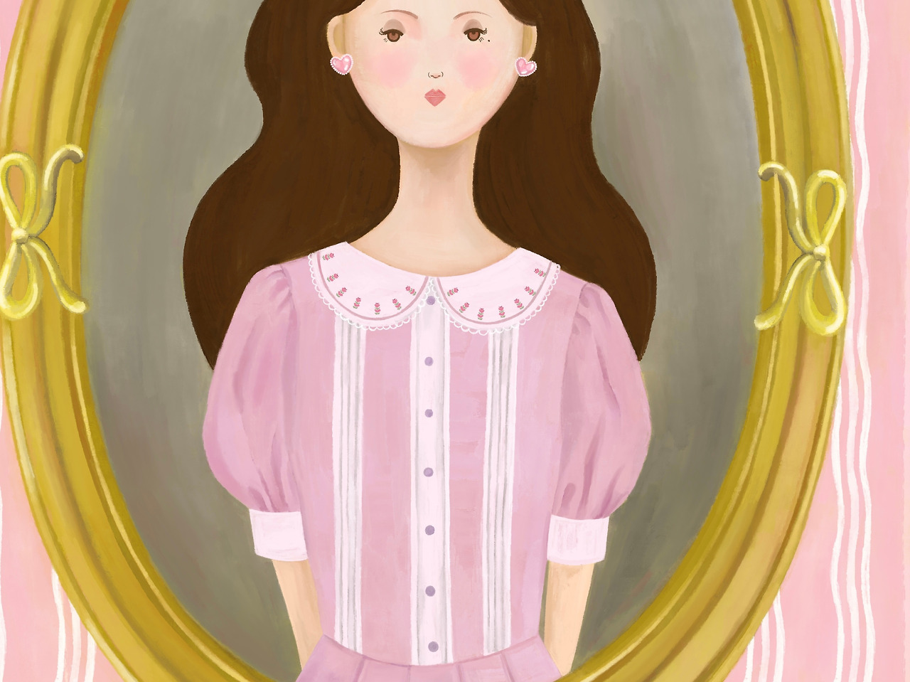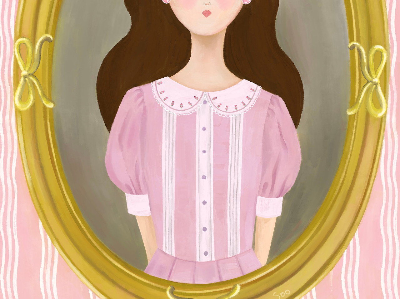 아껴두었던 자수가 새겨진 카라가 큰 분홍색 원피스를 입었습니다.