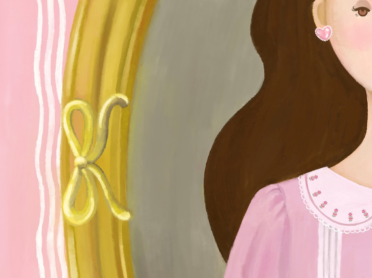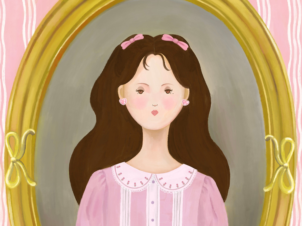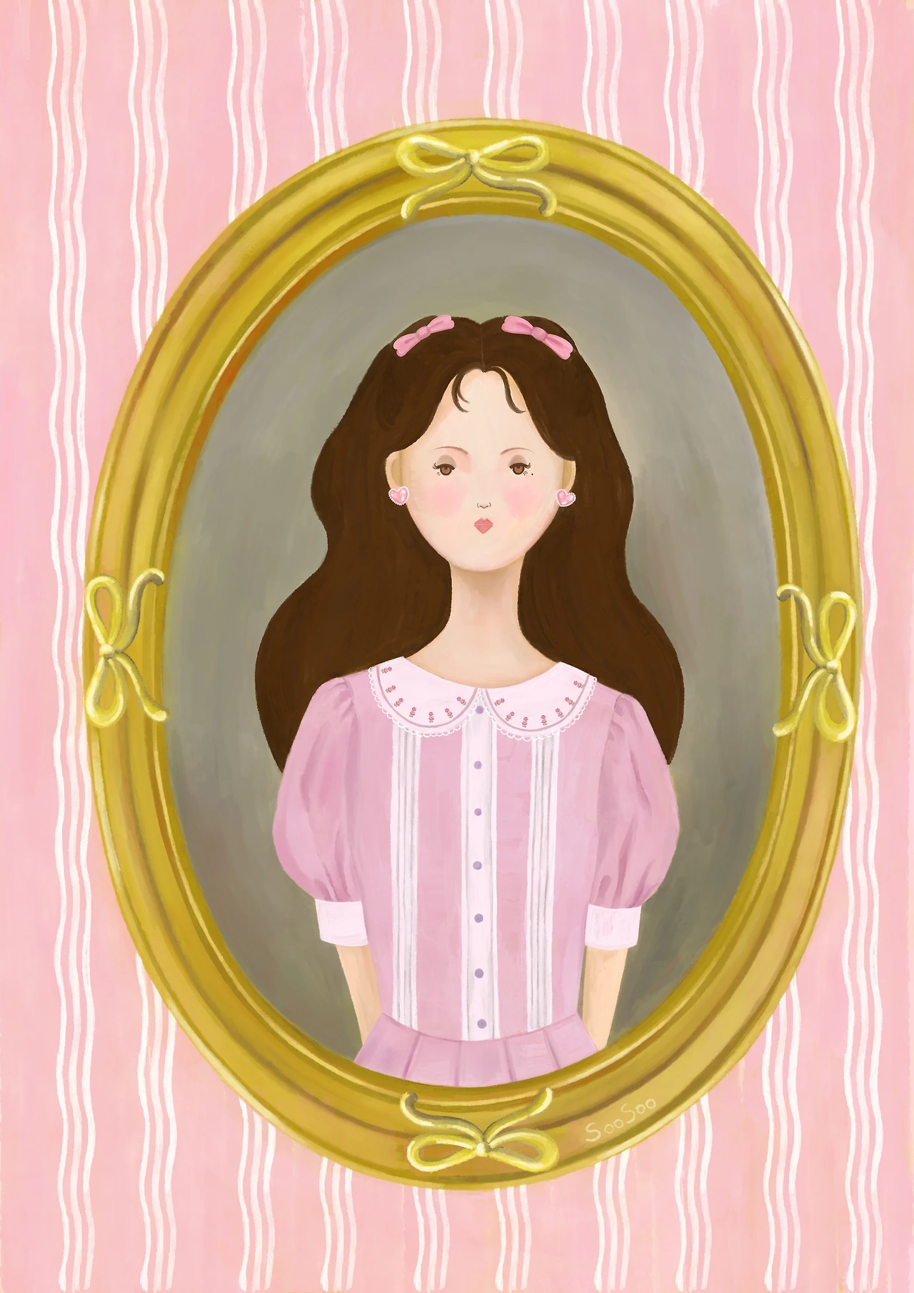 리본 장식의 앤틱 액자 속에는 로라의 모습이 담겨있습니다.