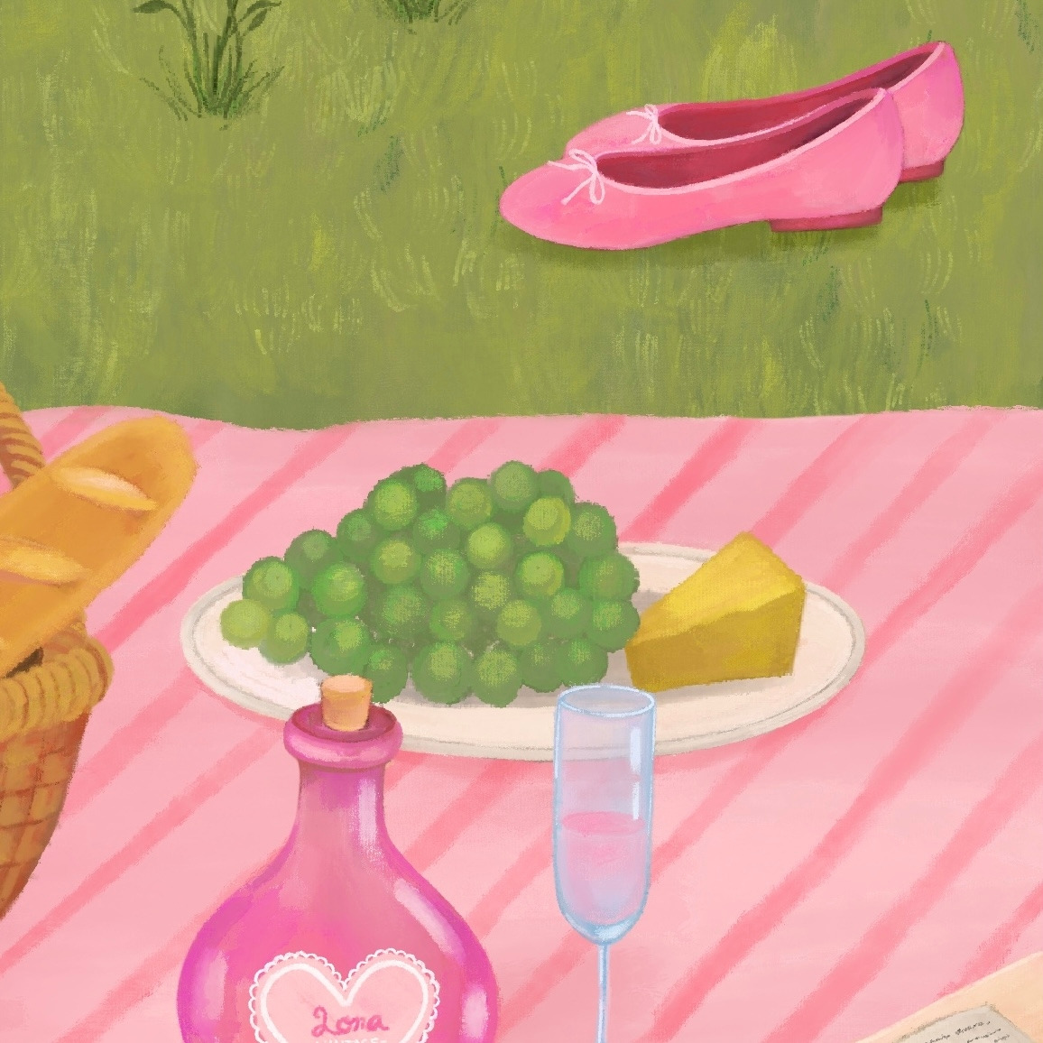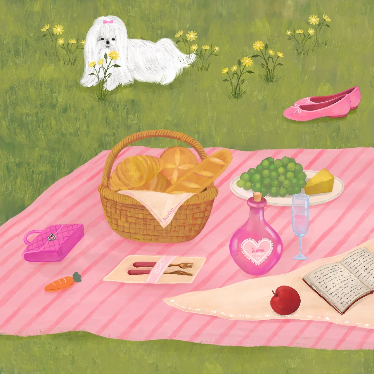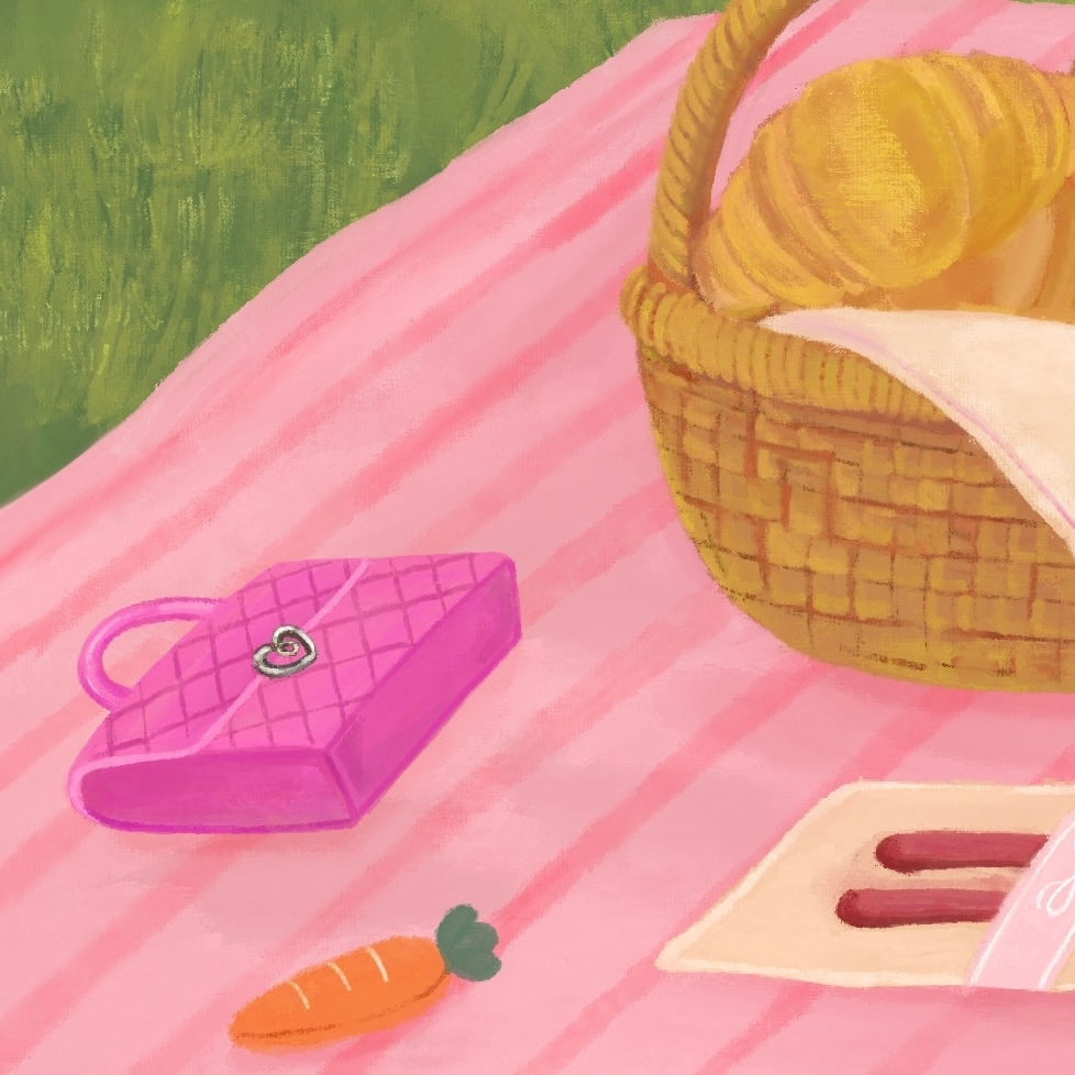 로라는 좋아하는 음식을 먹고 책을 읽으며 피크닉의 여유를 즐깁니다.