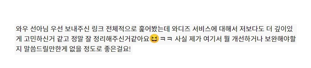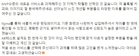 한 번은 와디즈의 그로스 포인트를 분석한 포스팅(링크)에 대해 현직자이신 지인분께 피드백을 받기도 했다. 그 외에 참여 중인 커리어 관련 커뮤니티에서 나의 블로깅 현황을 공개하고, 멤버분들께 피드백을 요청했다. 다양한 독자로부터 어떤 부분을 개선하면 좋을지. 또 어떤 부분을 유지해야 할지 듣는 게 많은 도움이 되었다.