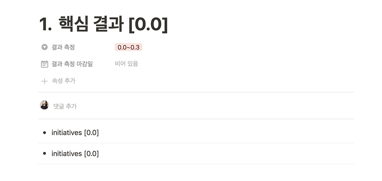 핵심 결과(Key results)에서는 반드시 "기간"과 "횟수", "퍼센티지"와 같이 정량적 수치를 포함시켜 이후 달성 여주를 추적하기 용이하도록 했다.
