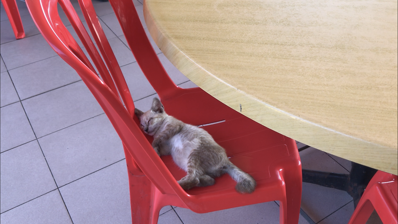 밥 먹고 있으면 고양이들이 심심하다고 와서 인간들 부르고, 한입 달라고 인간들 부르고, 새끼 고양이들은 아무데서나 드러누워 잔다.