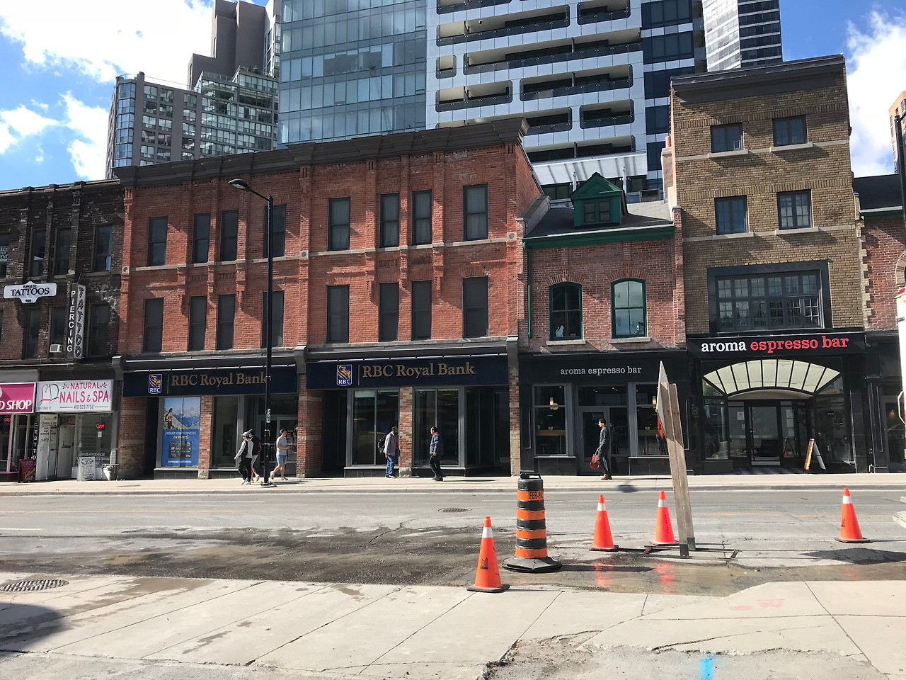 토론토는 원래 아래 사진처럼 빨간 벽돌로 지어진 낮은 건물들이 즐비한 도시였다. 그런데 이런 건물들은 보통 텅텅 비어있거나, 재건축을 기다리고 있다. 가장 '핫'한 동네인 영 스트리트 마저도.