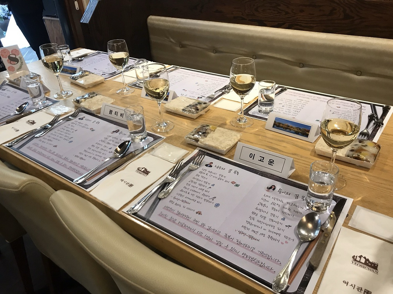 첫 번째로, 저희는 지정석을 도입했습니다. 각 집안당 80~90명으로 초대 인원을 제한하며, 한 명 한 명 참석 여부를 확인해야 했습니다. 부모님들도 직접 하객들에게 참석 여부를 확정받아야 했기에 추가적인 부담이 있었습니다. 이는 일반적인 한국 결혼식에서는 흔치 않은 방식일 뿐 아니라, 한 집안당 100명도 안 되는 인원을 초대한다는 것 자체가 한국 문화에서는 다소 어려운 일이었습니다. 하지만 하객들에게 각자의 자리를 미리 배정하고 테이블마다 이름표를 두어 더 품격 있는 자리를 만들고 싶었습니다. 이러한 과정은 준비 과정에서 많은 대화와 시간이 필요했지만, 결과적으로 의미 있는 선택이었습니다.