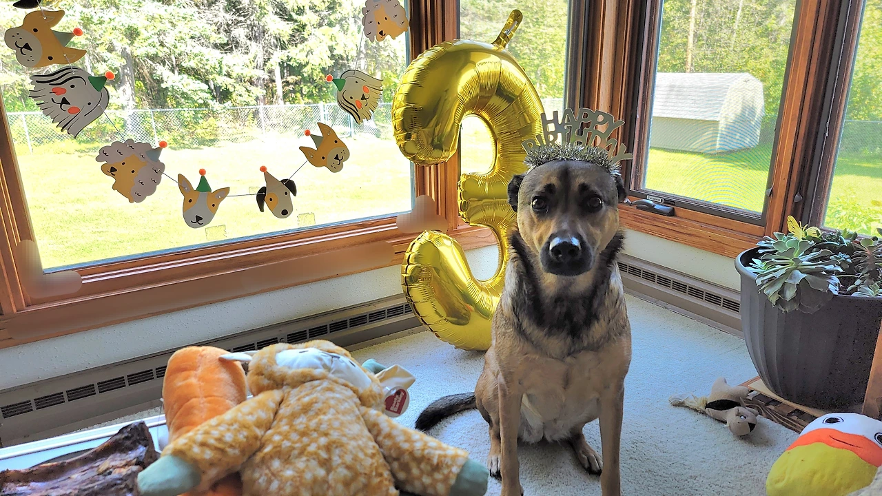소심하고 겁이 많은 하나는 커다란 생일 풍선이 낯선지 거실 구석에 숨어버린다. 생일 모자를 씌워주고 예쁜 사진도 많이 찍고 싶었지만 그마저도 불편해해서 마음껏 사진을 찍기도 힘들다. 그나마 테이블 위에 놓인 새 장난감과 간식거리에 흥분한 듯 꼬리를 흔드는 모습을 보니 기분이 좋아진다.