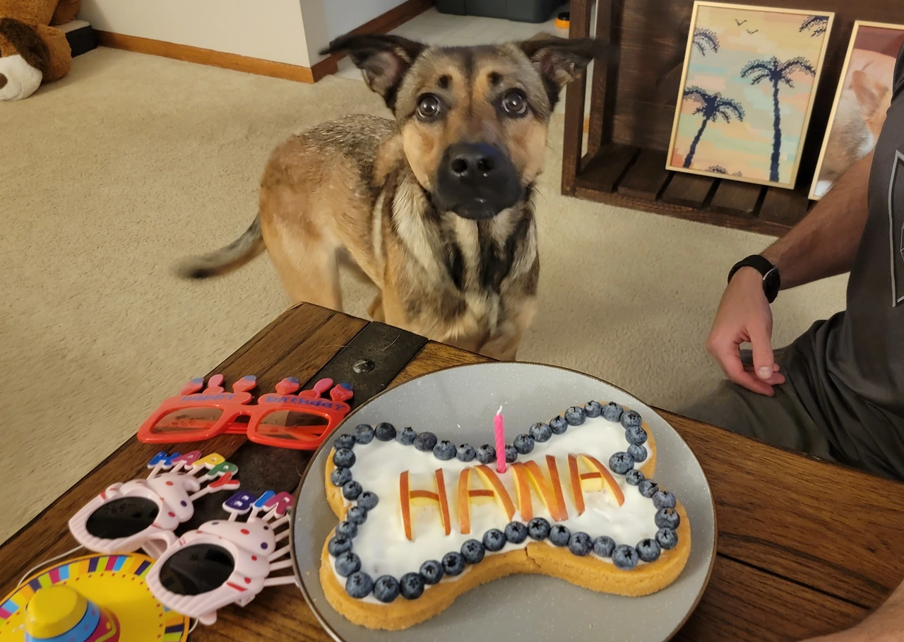 유기견 3개월 차에 신랑과 나에게 입양된 하나가 9월 19일, 3살 생일을 맞았다. 일 때문에 당일에 생일을 챙기지 못하고 오늘 생일 파티를 했다.