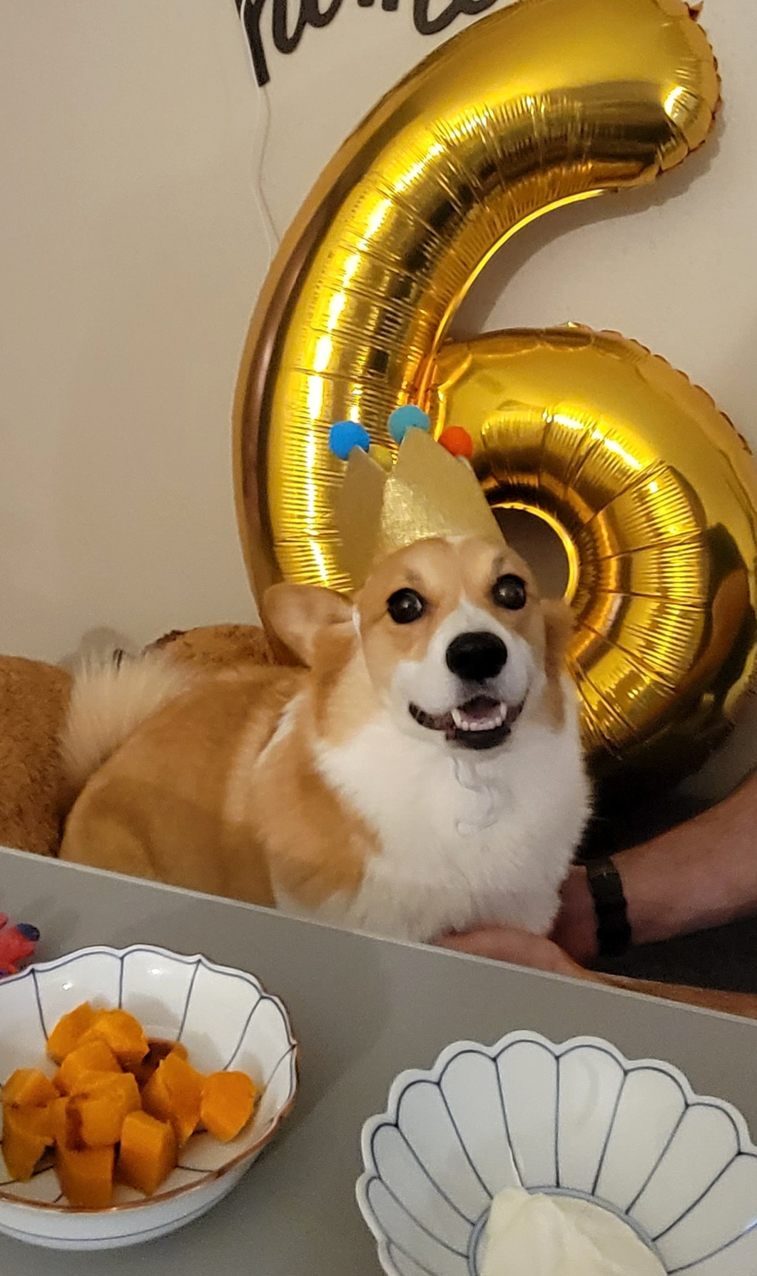 손바닥만 했던 만두는 내가 평생 키우고 싶다고 노래를 불렀던 웰시코기이다. 자신이 집안의 여왕이자, 최고 보스라고 생각하는 그녀는 한껏 들뜬 표정으로 6번째 생일상을 받았다. 예쁜 사진을 찍고 싶었으나 고구마와 요거트에 극도로 흥분한 그녀는 내 말을 듣지 않았다.