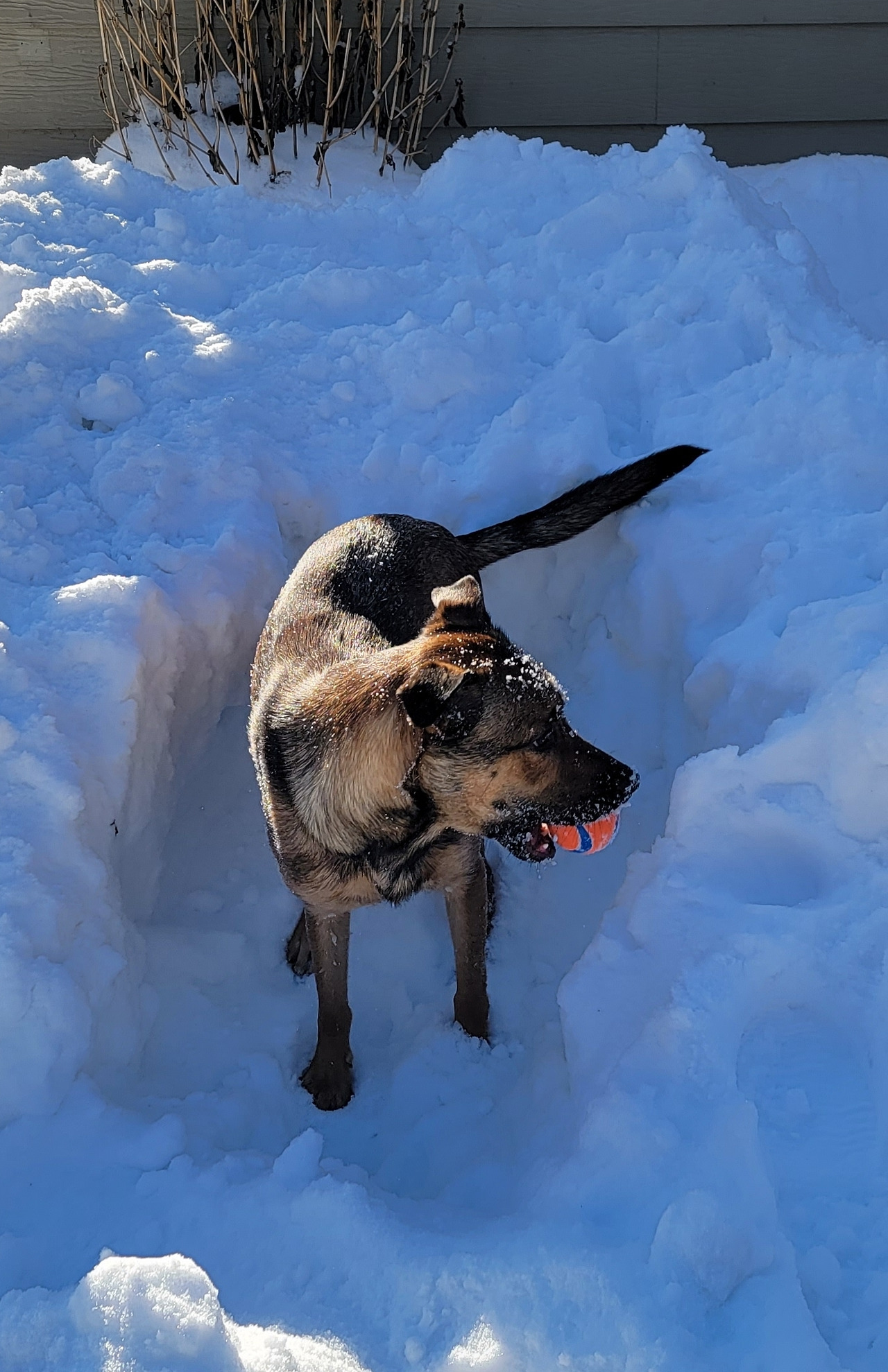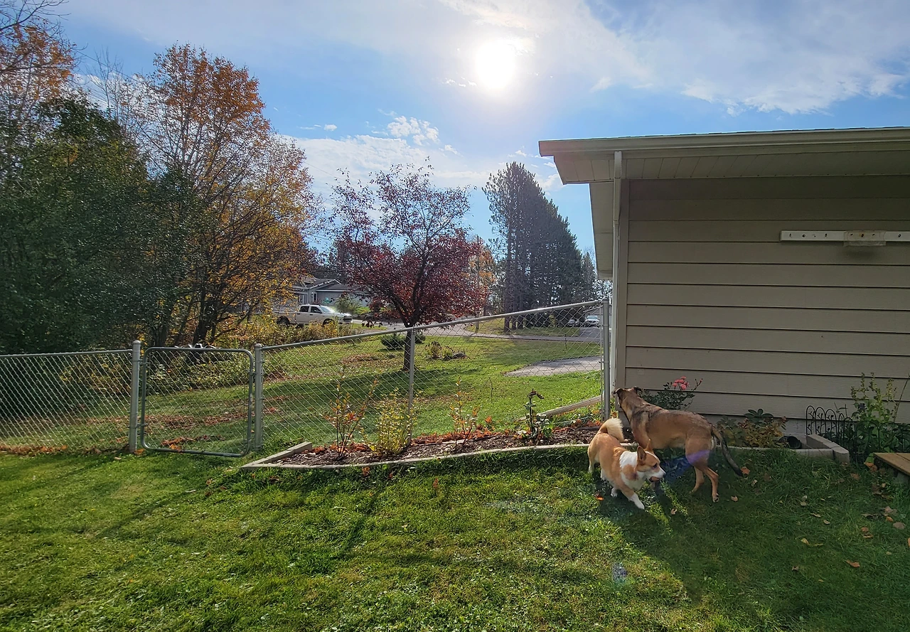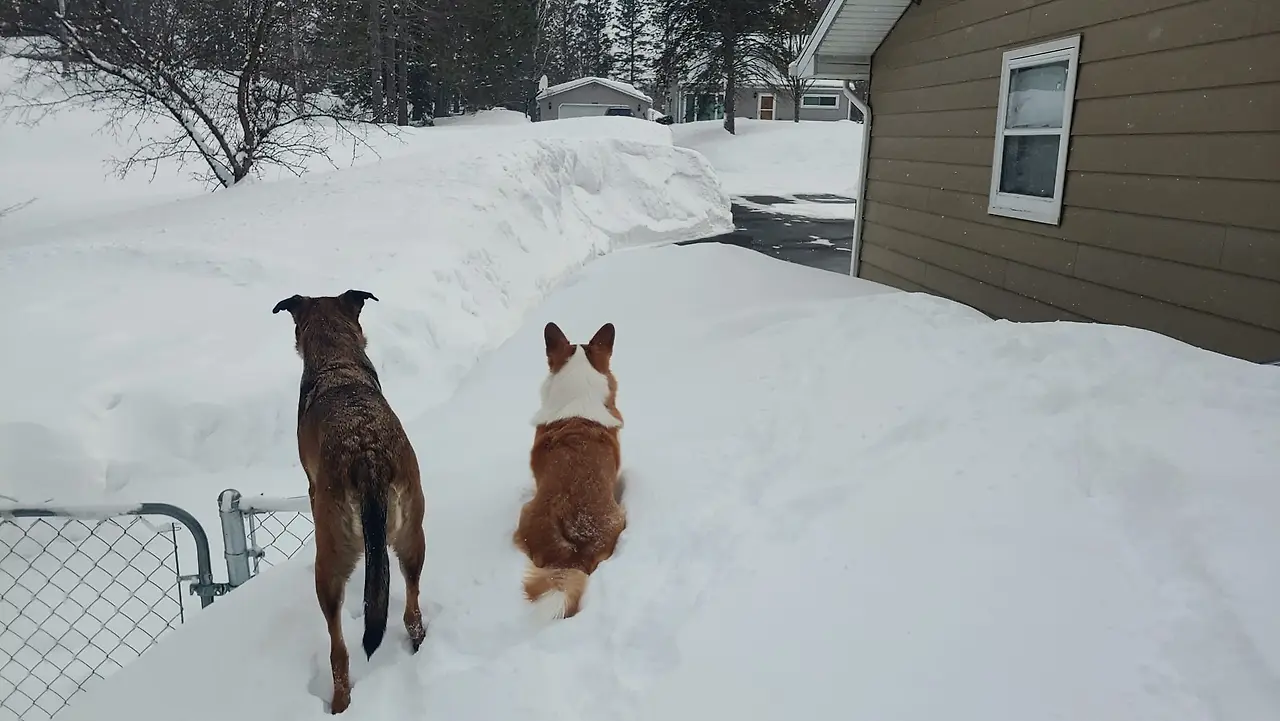한숨을 내쉬는 신랑과 나와는 달리 만두와 하나는 신이 났다. 특히나 겨울을 좋아하는 웰시코기의 특성 때문인지 만두는 흥분을 감추지 못하고 뒷마당을 이리저리 뛰어다니고, 하나도 신이 나는지 만두 뒤를 열심히 쫓아다닌다.