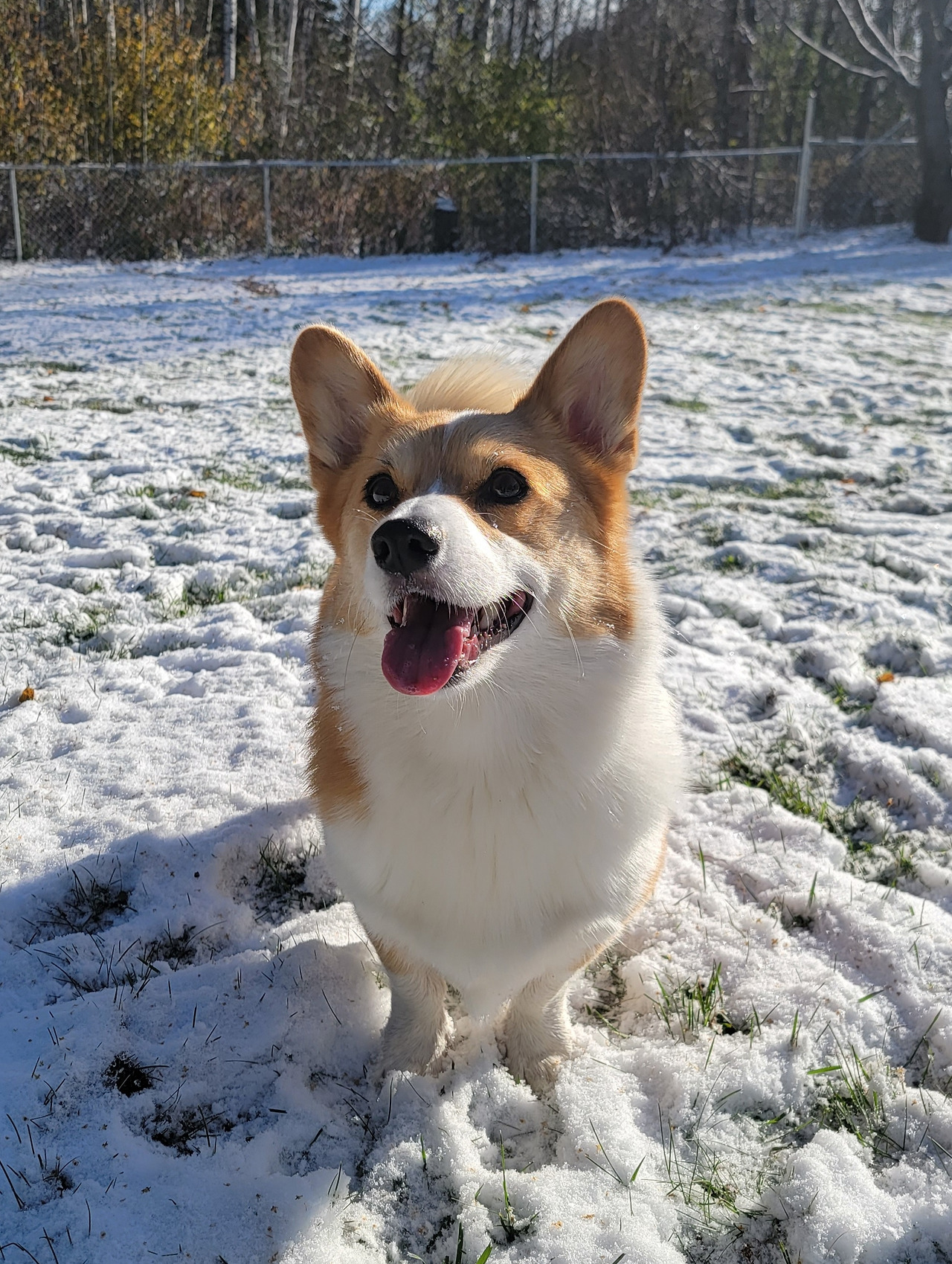 만두는 두말하면 잔소리. 이중모의 웰시코기라 추위에 강하기도 하고, 도톰한 발바닥은 강철 젤리가 붙은 것처럼 눈 밭을 안방처럼 헤집고 다닌다. 동굴 탐험을 하듯 눈더미에 얼굴을 파묻고 킁킁 쉼 없이 냄새를 맡기도 하고, 터널을 파듯 앞발로 눈 속을 파헤치고 들어가기도 한다. 하나도 하나지만, 만두의 활동량과 에너지는 감히 상상을 초월한다.
