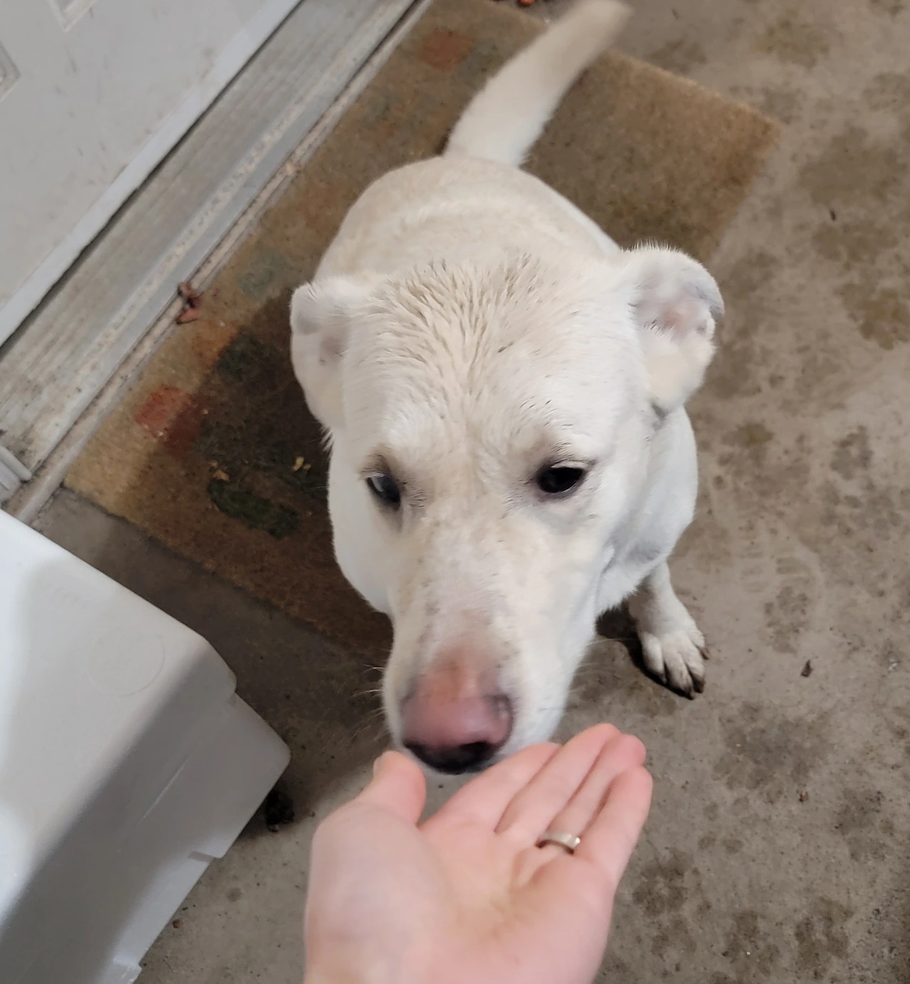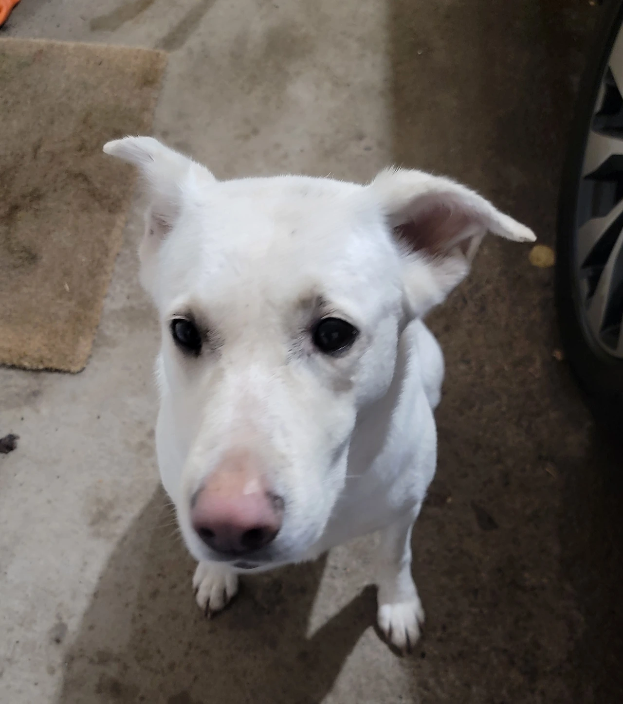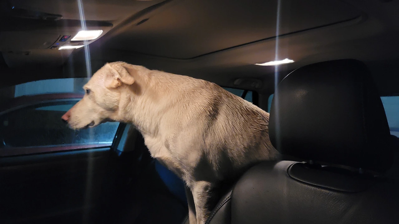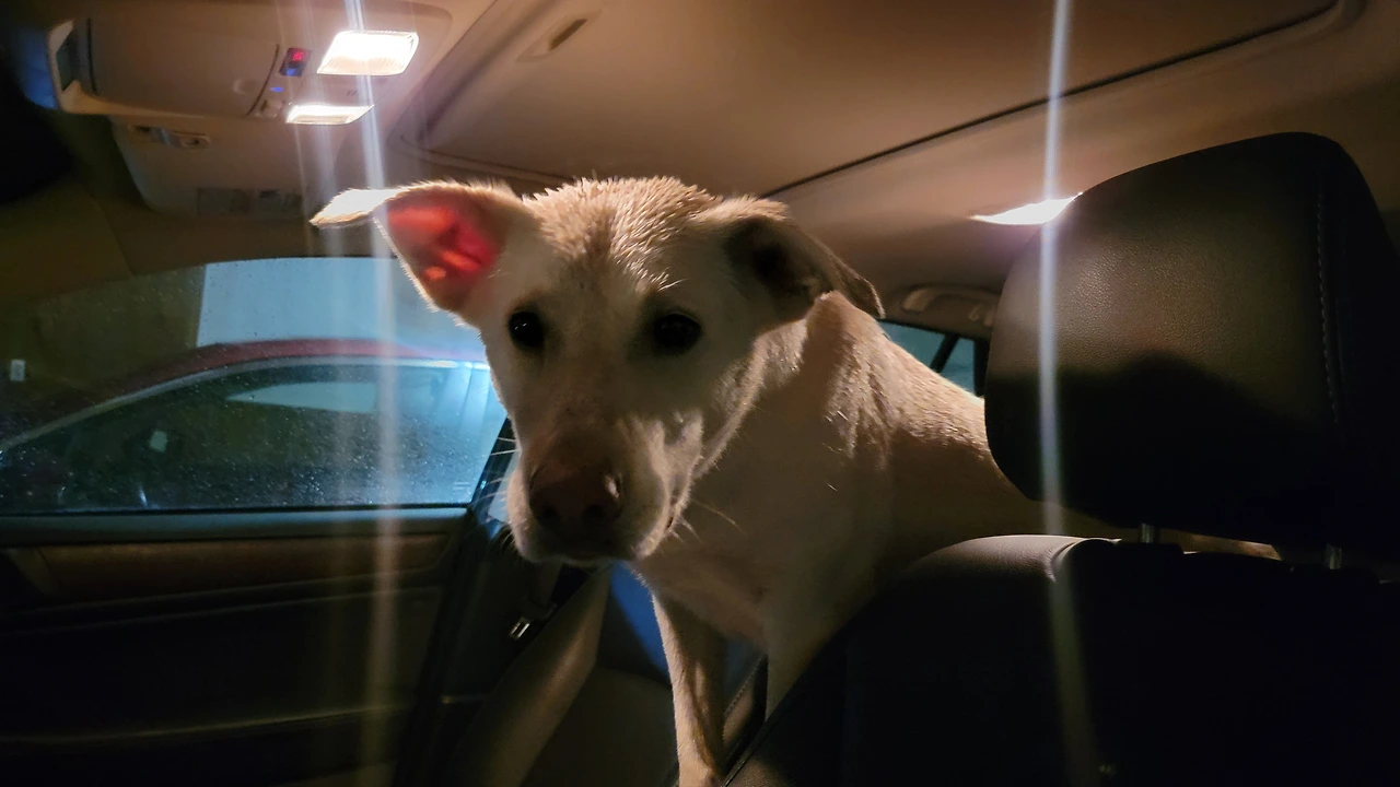 진돗개 정도되는 크기의 하얀색 강아지였다. 놀란 마음에 서둘러 차를 세우고 비상등을 켠 뒤, 밖으로 나갔다. 비에 흠뻑 젖은 개는 온몸을 덜덜 떨면서 내 옆으로 다가와 낑낑 우는 소리를 냈다. 머리보다 몸이 먼저 움직였다. 바로 트렁크 문을 열었다. (참고로 내 차는 SUV 라 트렁크와 차 내부가 연결되어 있다) 래브라도 믹스처럼 보이는 개는 망설임 없이 차 안으로 뛰어올랐다.