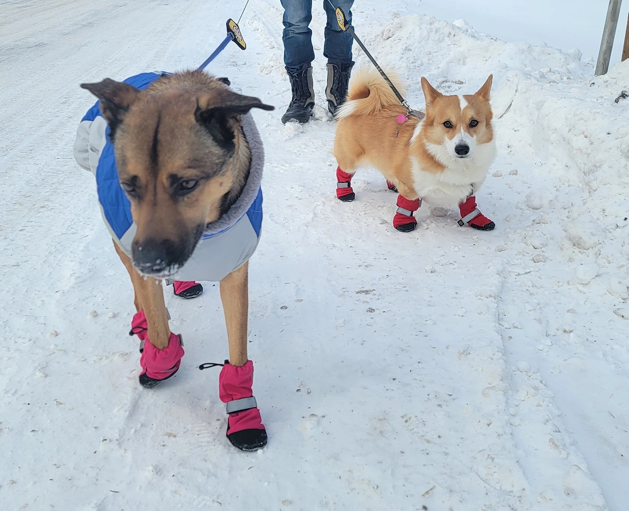 이렇게 기온이 떨어지면 아무리 겨울을 좋아하고 추위에 강한 만두와 하나라도 중 무장을 하고 산책을 나가야 한다. 특히나 발바닥을 보호하기 위한 부츠는 필수. 올겨울, 월동 준비를 하며 새로 산 부츠가 다행히 제 역할을 잘해주고 있다.