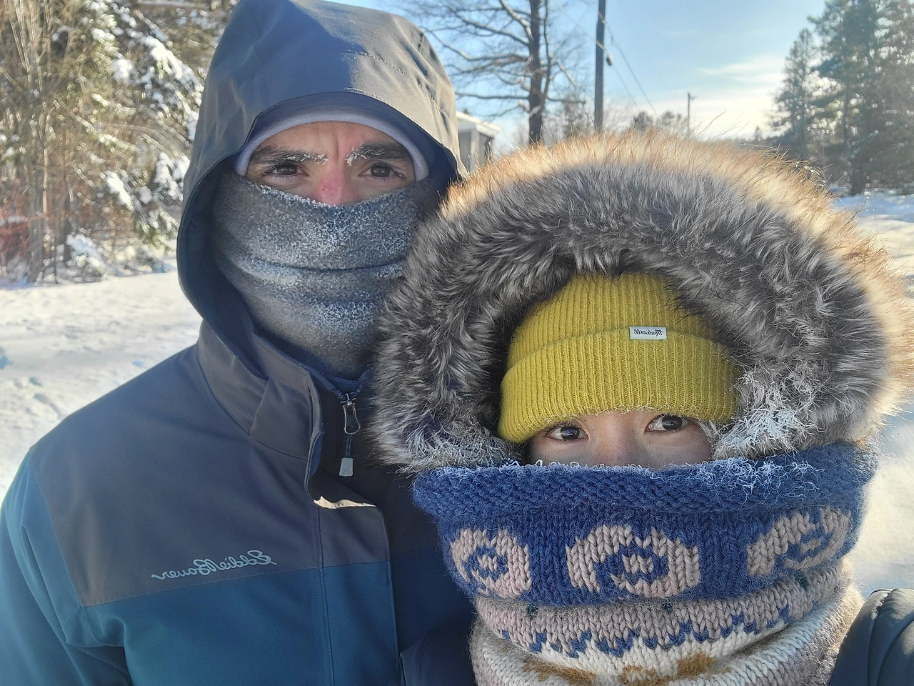 신랑과 나도 눈만 내놓고 온몸을 꽁꽁 싸맸다. 이번 주 주말까지 영하 20도의 날씨가 계속된다는데... 진심으로 너무너무 춥다.
