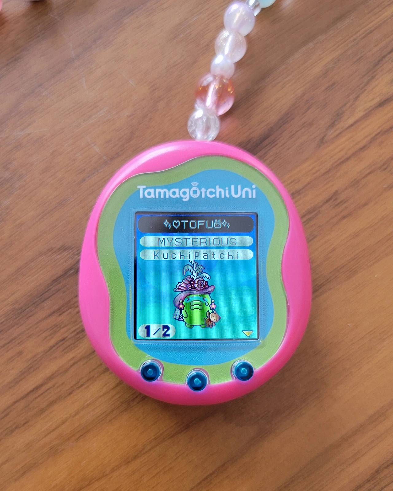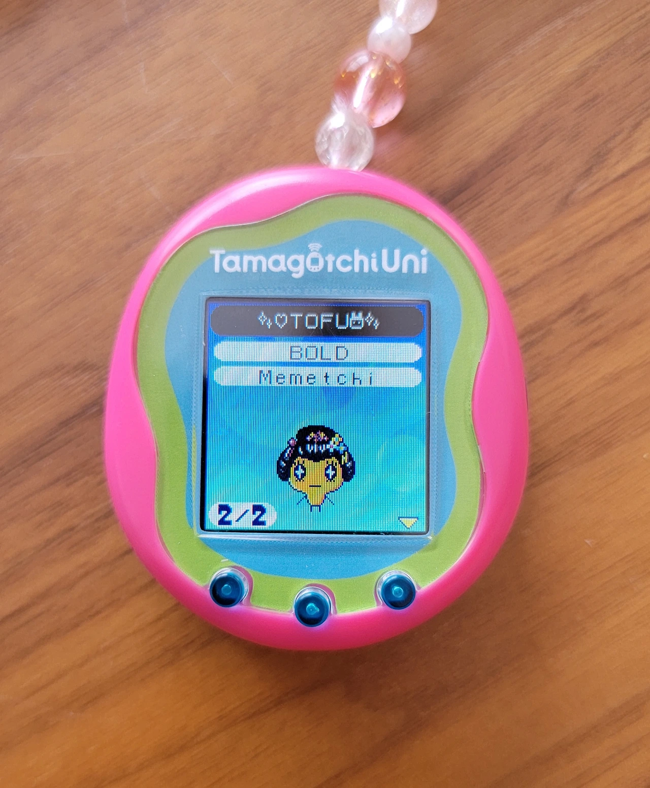 단 한 번도 키워본 적이 없어서 어떤 방식으로 타마고치가 크는지, 어떻게 보살펴야 하는지 잘 몰랐지만 하다 보면 알게 되겠지 하는 마음으로 곧장 전원을 켜고 알부터 부화시켰다. Tofu라는 이름을 붙여주고 먹이와 간식을 꼬박꼬박 챙겨주니 삼일 만에 어른 타마가 되었다.