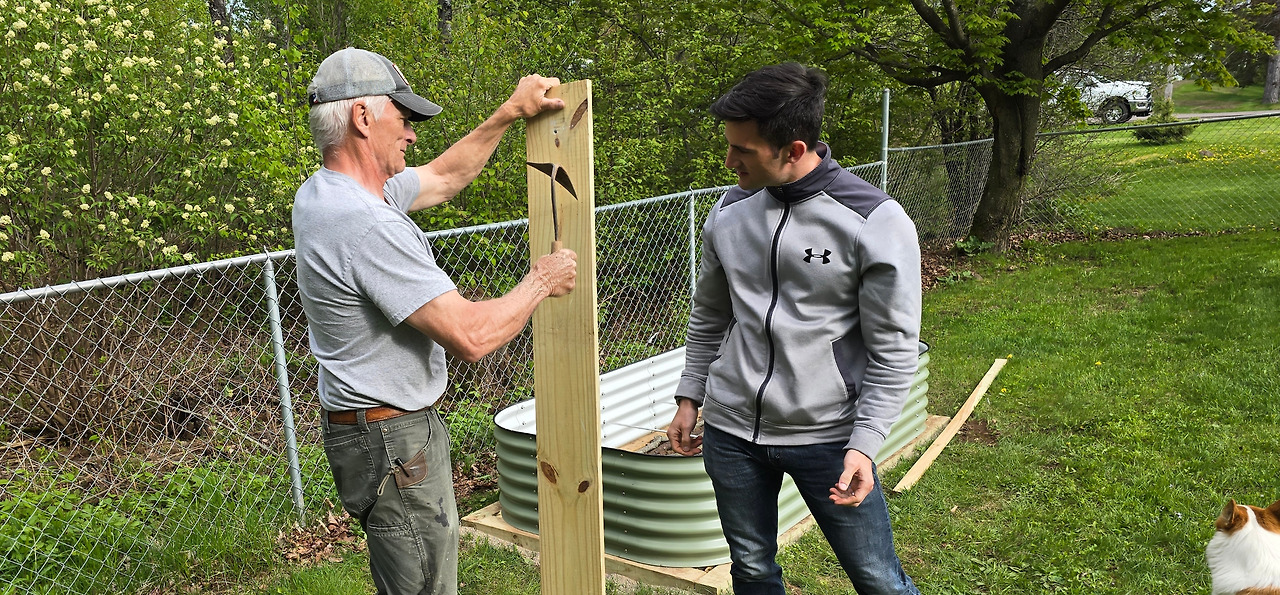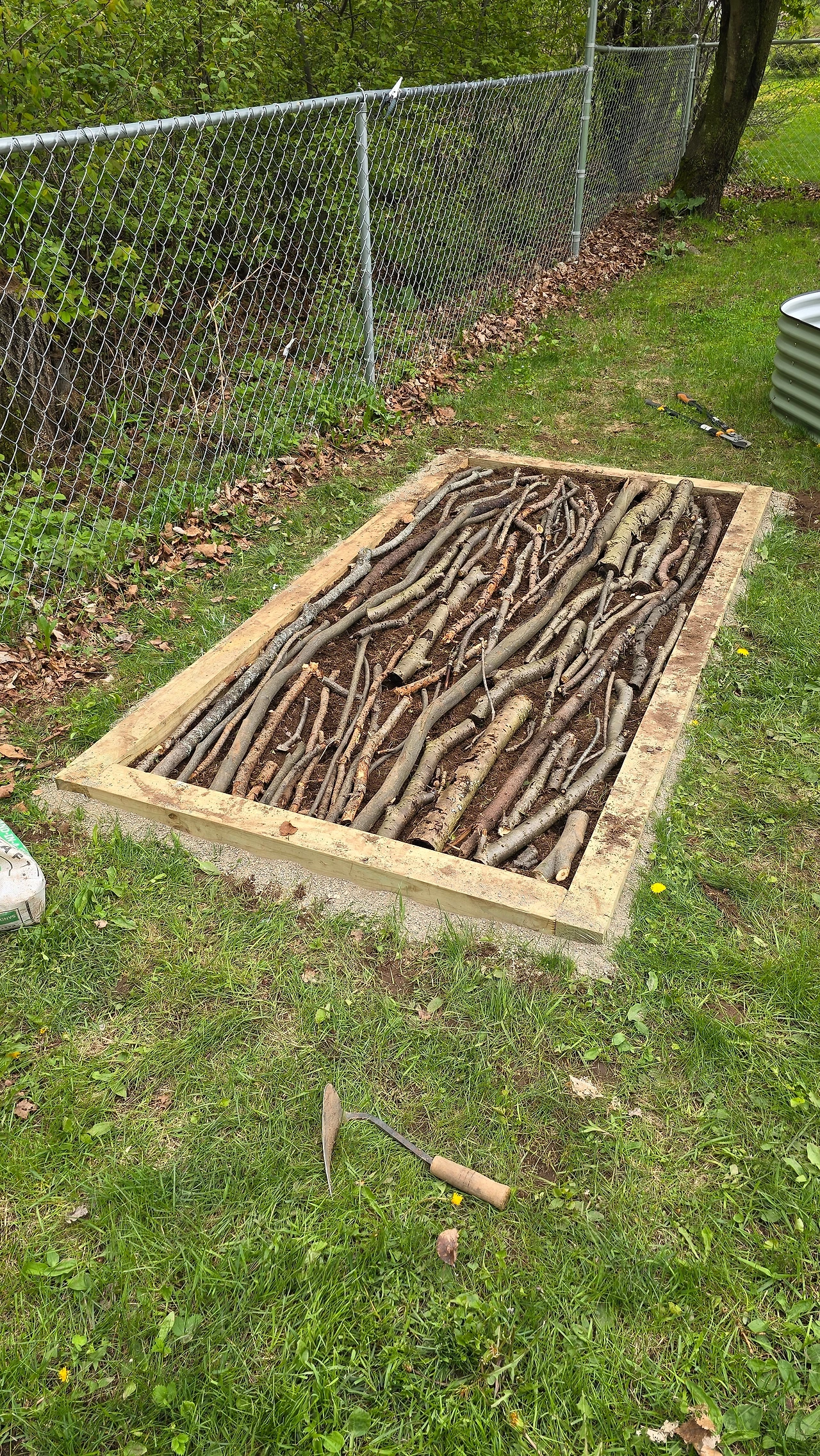 지지대를 설치하지 않으면 시간이 지나면서 박스가 움직일 위험이 있어 안전하지 않으며, 잔디를 먼저 없애지 않으면 아래에서부터 점차 자라나 나중에는 채소를 키우지 못할 거라고 했다. 가장 큰 문제는 물 빠짐. 아래가 뚫린 가든 박스지만 오랫동안 사용하면 아래쪽의 흙이 단단해지기 때문에 물이 잘 빠지지 않게 되어 채소 뿌리가 썩는 일이 발생한다는 것이다. 아... 몰랐네... 그때부터 가든 박스 프로젝트에 들어갔다. 홈 디포(Home depot)에서 나무를 사 지지대를 만들고, 잔디를 깨끗이 제거한 뒤 배수가 잘 될 수 있도록 뒷 숲에서 주어온 나뭇가지를 깔았다. 이제 지지대에 박스를 고정하고 나뭇가지 위에 가든 패브릭을 덮어 흙을 채우면 채소 모종을 심을 수 있게 된다.