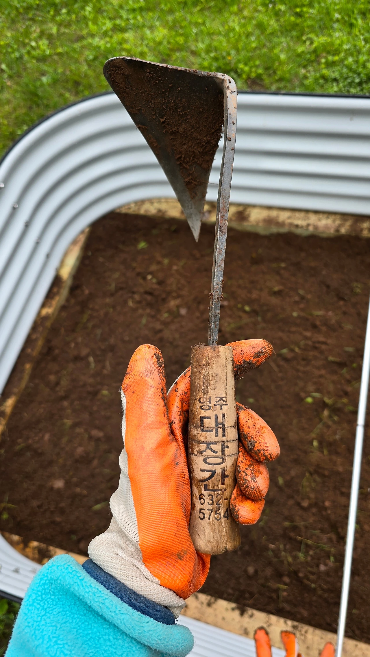 이 일련의 과정을 함께 해준 나의 애장품, 바로 호미. 땅을 파서 지지대를 설치할 때도, 잔디를 없앨 때도 유용하게 쓰였던 이 호미는 3년 전에 아마존에서 구매했다. 며칠 동안 밖에서 비를 맞은 적도 있었고, 사용하고 난 뒤 흙을 닦아내지도 않고 그대로 보관을 한 적도 많았는데 3년이란 시간이 흐르는 동안 녹도 거의 슬지 않았고, 손잡이 부분이 덜렁거리거나 날이 무뎌지지도 않았다.