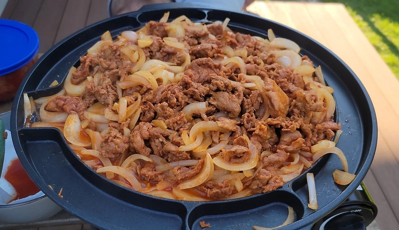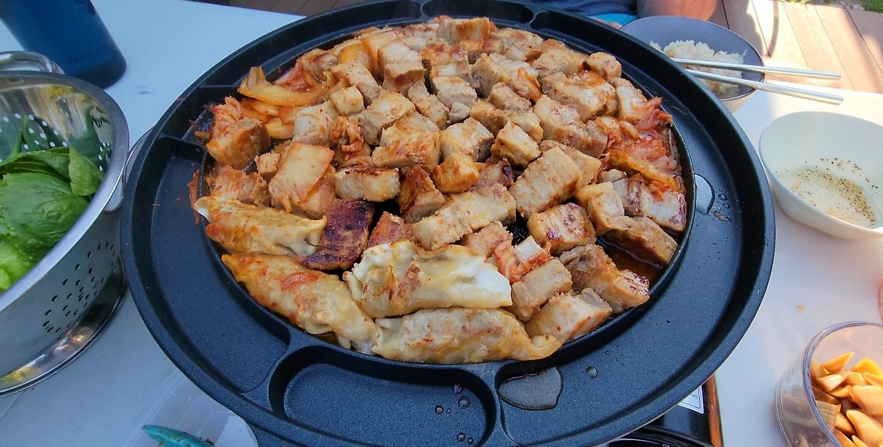 휴가 동안 따뜻한 날씨를 핑계로 뒷마당에서 삼겹살도 구워 먹고 제육도 만들어 먹었다. 그리고 오늘 점심으로 작별 라면을 먹었다.