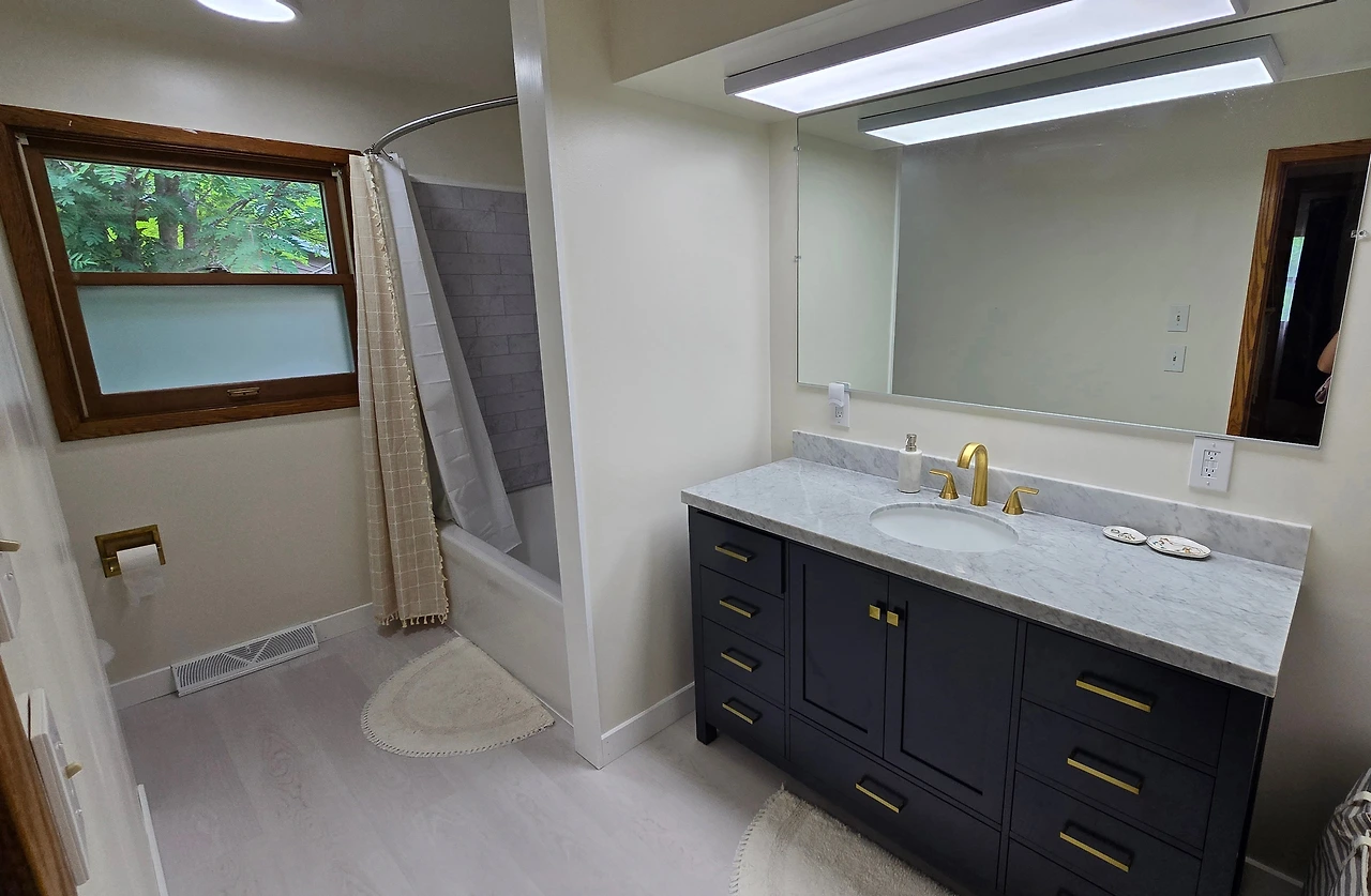 참고로 시아버지께선 내가 만든 음식을 정말로 좋아하신다. 한국 음식은 물론이고 내가 만든 건 뭐든지 맛있다며 밥그릇을 싹싹 비우곤 하시는데 리모델링하는 동안에도 점심이나 저녁 식사를 만들어 드리면 "이러다가 5Kg가 찌는 건 시간문제야!"라며 농담을 하시면서도 단 한 번도 음식을 남기는 법은 없으셨다. 그동안 해드린 한국 음식은 김치찌개, 김밥, 칼국수, 수제비, 만둣국, 김치전, 부추전, 감자전, 김치볶음밥, 닭갈비, 삼겹살 등등... 셀 수도 없이 많고 스테이크나 생선 튀김, 양념새우, 야끼소바, 퀴노아 버거, 블랙빈 버거, 고구마 & 진저 수프 같은 것들도 만들어 드렸었다. 혼자 지내시다 보니 식사를 대충 토스트로 때우시거나 가공식품을 데워서 드시는 경우가 많아서 더욱 내가 만든 음식을 좋아하시는 건지도 모르겠다. 오늘은 스테이크가 드시고 싶다는 시아버지의 요청으로 신랑과 나는 아침 일찍 코스트코에 가서 필요한 재료를 사고 오랜만에 화이트 와인과 레드 와인도 한 병씩 샀다. 저녁 5시, 시간 맞춰 도착하신 시아버지는 나름 새롭게 꾸며진 욕실부터 구경하신다.