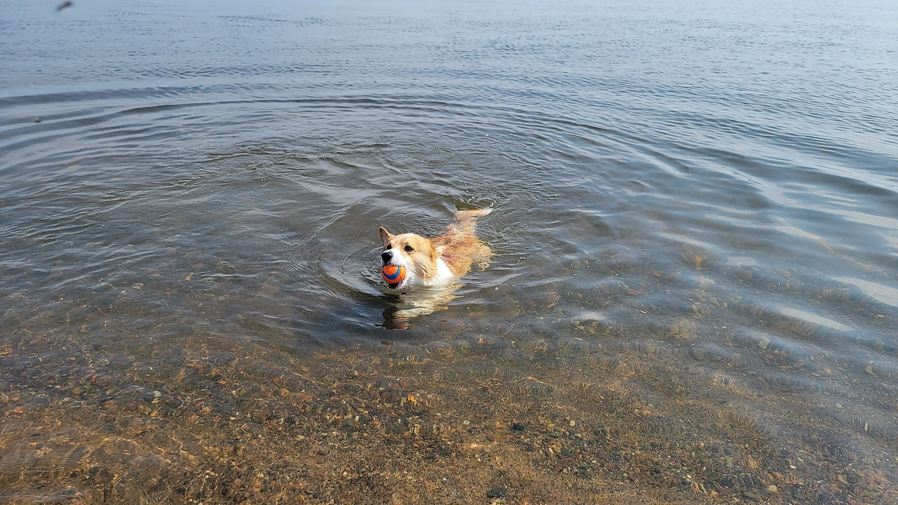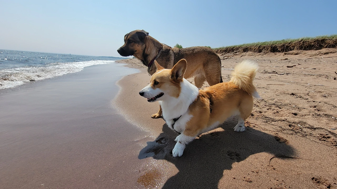 여름의 중반을 지나고 있는 둘루스, 미네소타는 더울 때는 가끔 30도까지 기온이 오르기는 하지만 대부분 20도 중후반을 유지하고 있다. 고작 2개월 정도의 여름이라 신랑과 나는 최대한 밖에서 시간을 보내려 하는데 더위에 취약한 만두와 하나는 기온이 30도까지 오르면 맥을 추리지 못한다. 웰시코기 만두는 내리쬐는 태양빛이 피부에 직접적으로 닿지 않도록 이중모가 막아주기는 하지만 지열과 공기의 후덥지근함으로 힘들어하는 경우가 많고, 짙은 갈색의 짧은 털을 가진 하나는 태양빛을 그대로 흡수하기 때문에 더욱 더위에 취약하다. 매일 두 번씩 산책을 하는 우리는 날씨가 너무 더울 때는 어쩔 수 없이 코스를 짧게 할 수밖에 없다. 물론, 만두나 하나가 포기하고 집을 향해 몸을 돌리는 경우도 많지만 말이다. 그런 날은 집으로 돌아와 집 안에서 장난감을 가지고 놀아주거나 아주 짧은 시간 동안 뒷마당에서 공놀이를 해 하루 운동량을 채워주려 노력한다. 이번주에는 약 3일 정도 30도를 웃도는 날씨가 계속되어 만두와 하나를 데리고 수페리어 호수 해변으로 향했다. 바닷물이 아니라 호수 물이기 때문에 마음껏 물놀이를 해도 크게 부담이 없어서 여름이 되면 종종 두 마리를 데리고 해변으로 간다. 공놀이도 하고 수영도 하고 자연산 나뭇가지도 마음껏 씹어 뱉으며 양껏 놀다 집으로 돌아오면 그날은 하루 종일 배를 내놓고 잠자기 바쁘다.