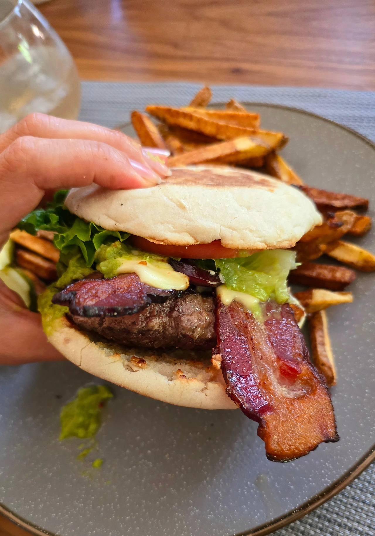 바삭한 베이컨에 육즙 가득한 패티, 아삭한 상추 잎과 토마토, 짭조름하게 구워진 양파와 버섯에 부드럽게 입안을 감싸는 아보카도, 거기에 방금 갓 튀겨낸 프렌치프라이까지! 한마디로 환상적인 맛이었다. 잠시 다이어트는 잊고 오랜만에 고칼로리 음식을 마음껏 즐겼다. 다이어트 중이지만 맛있게 잘 먹은 음식에 대해서는 후회하지 않는 것이 나의 철칙. 어제 잘 먹었었으니 오늘부터 힘내서 다시 다이어트 시작하면 되지! 파이팅!