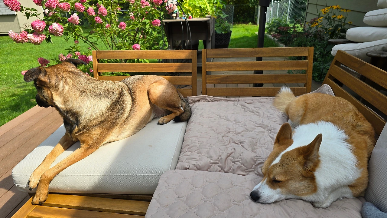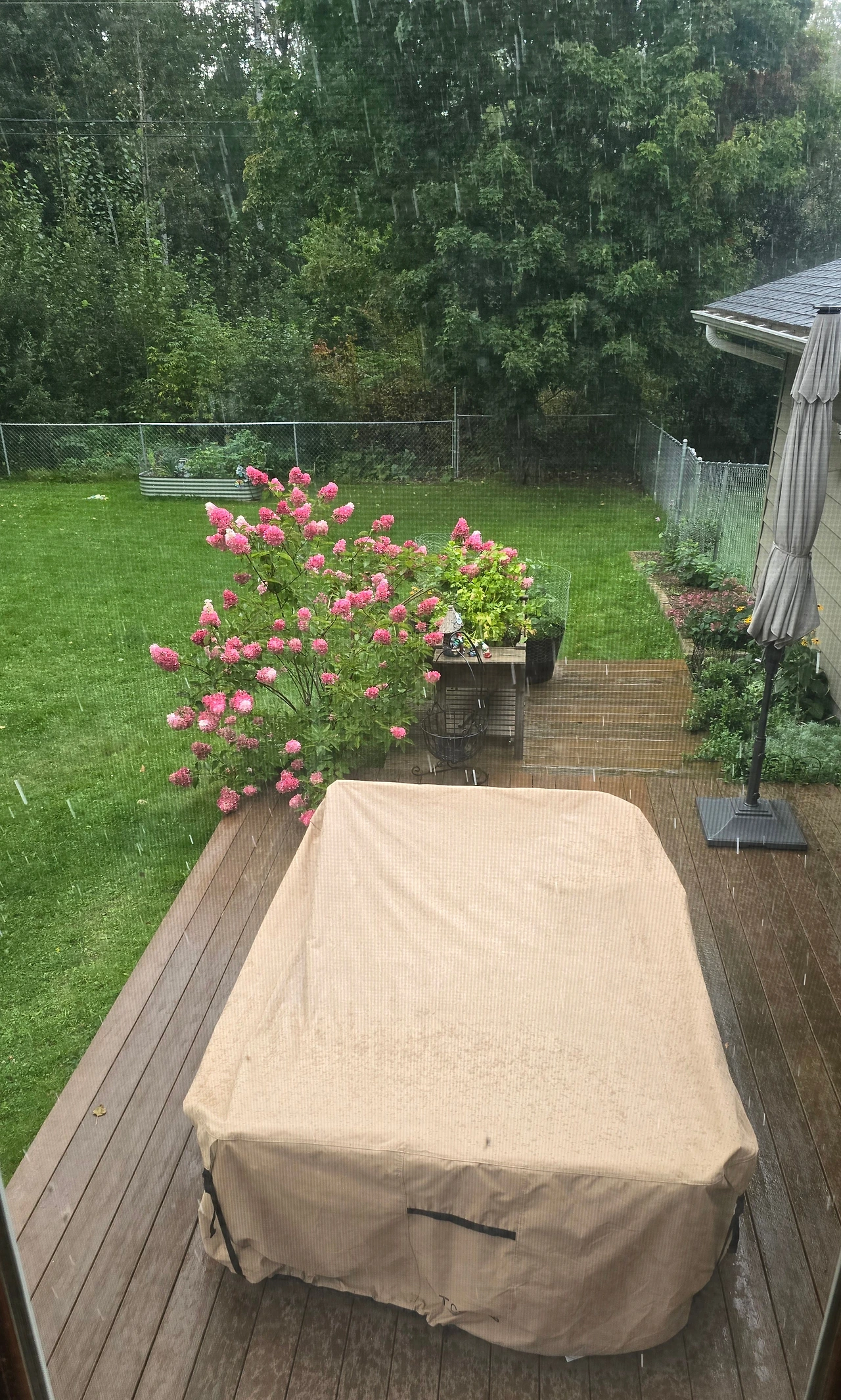 낮엔 섭씨 20도 내외, 밤엔 10도 내외를 유지하고 있는데 이것도 얼마 못 가 뚝 떨어져 버리겠지. 그리고 또 겨울이 오겠지... 겨울이 오는 건 싫지만 신랑의 대학교 마지막 학기가 올 겨울에 끝나고 내년 1월이나 2월에 NCLEX(미국 간호사 시험)를 칠 예정이라 기대가 되기도 한다. Prerequisite까지 합쳐 총 3년이란 시간이 걸린 신랑의 간호대학 여정이 끝나는 겨울이라 더 들뜨는 건지도 모르겠다. 또한 올여름엔 어떻게든 비켜 가겠지 했던 만두의 알러지가 또 말썽을 피워 동물병원에 가서 주사도 맞고 지금까지도 알러지약을 먹고 있어서 차라리 겨울이 빨리 왔으면 좋겠다는 생각이 드는 것도 사실이다. 벌겋게 화가 난 만두의 피부를 보는 것도, 가렵다고 여기저기 긁는 걸 보는 것도 너무 마음이 아프니 말이다. 오늘 목요일, 낮 기온 20도. 바람은 서늘하지만 햇빛은 아직 따뜻해서 만두와 하나와 함께 일광욕을 즐기려 뒷마당에 나갔다. 한 30분 지났을까... 갑자기 밀려든 먹구름이 심상치 않아 얼른 정리하고 들어오니 아니나 다를까 장대비가 쏟아진다.