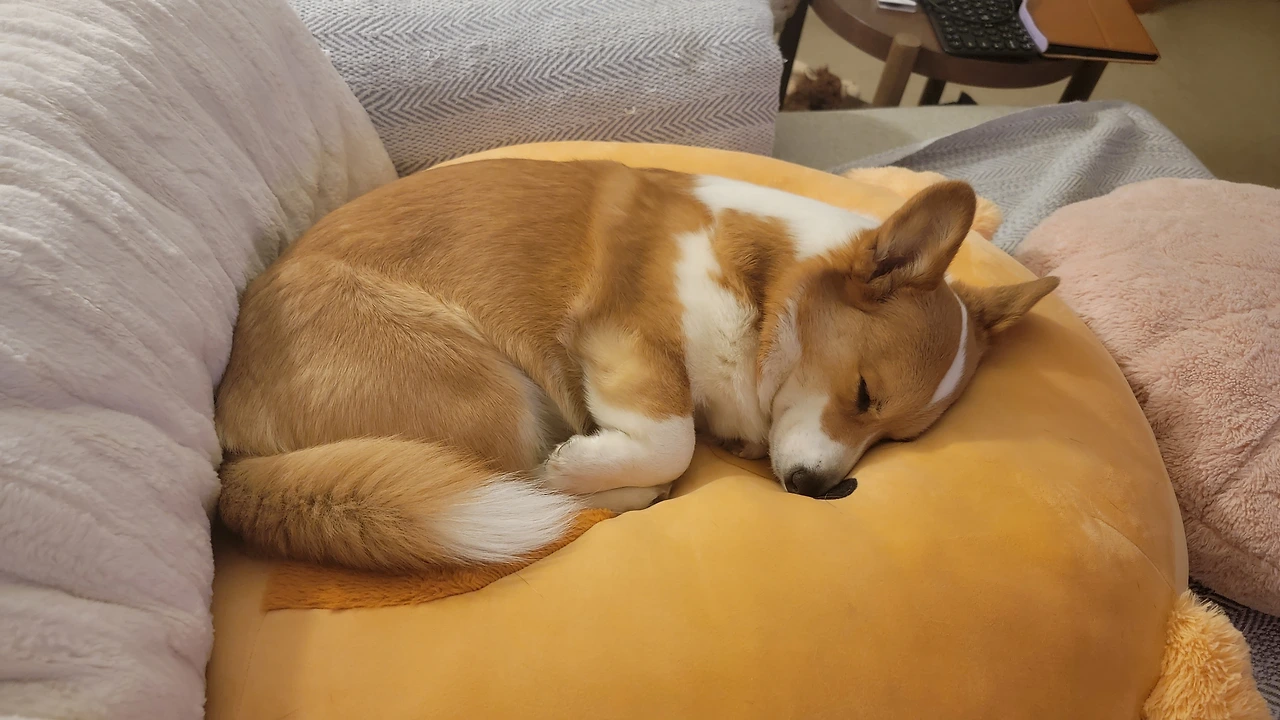 또 하나, 웰시코기들은 털이 2중으로 나기에 진짜 털이 많이 빠진다. 요즘 같은 털갈이 때는 특히나 더 심하다. 만두를 입양한 뒤 되도록이면 검은색 옷은 사지 않고 입지도 않는다. 워낙에 집에 만두 털이 날리다 보니 검은색 옷은 금세 티가 나기 때문이다. (이중모의 특성상 미용을 해주는 것이 좋지 않다고 들었다. 그래서 되도록이면 만두의 털을 자주 빗어주려 노력한다.)