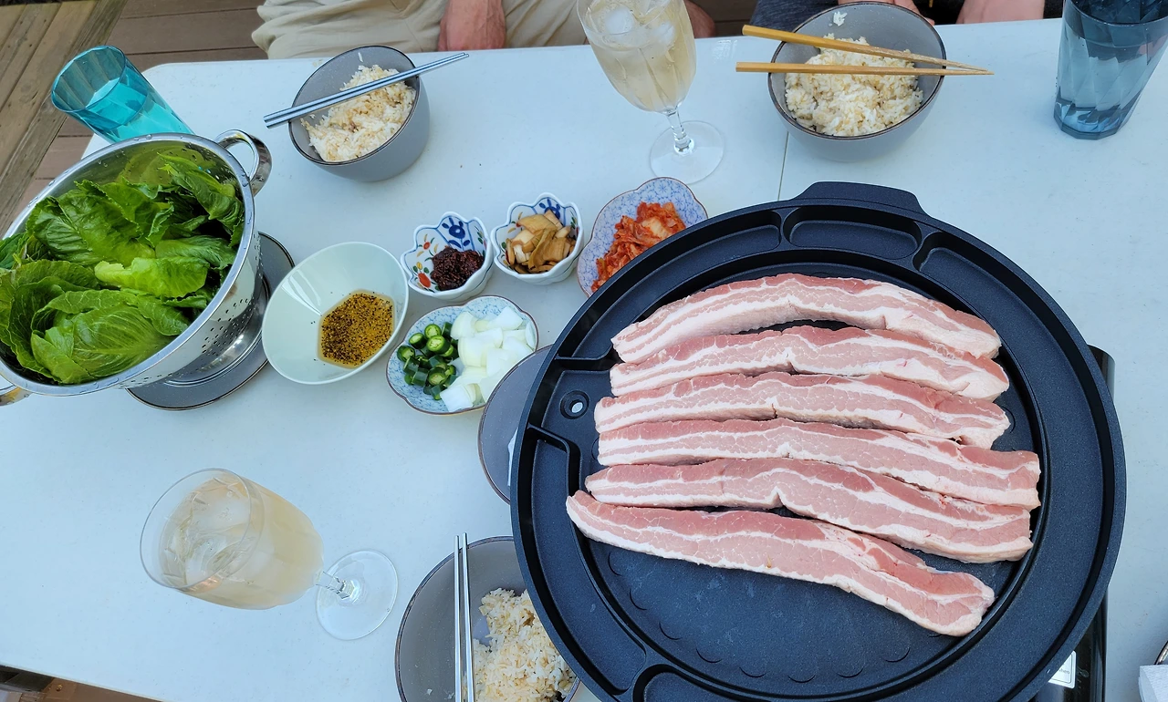 여름이 되면 신랑과 나는 뒷마당에서 자주 삼겹살을 구워 먹는다. 코스트코에서 산 삼겹살과 김치를 불판에 굽고 내가 직접 기른 상추와 깻잎으로 쌈을 싸서 먹는 그 기쁨은 정말 말로 설명하기 힘들다.