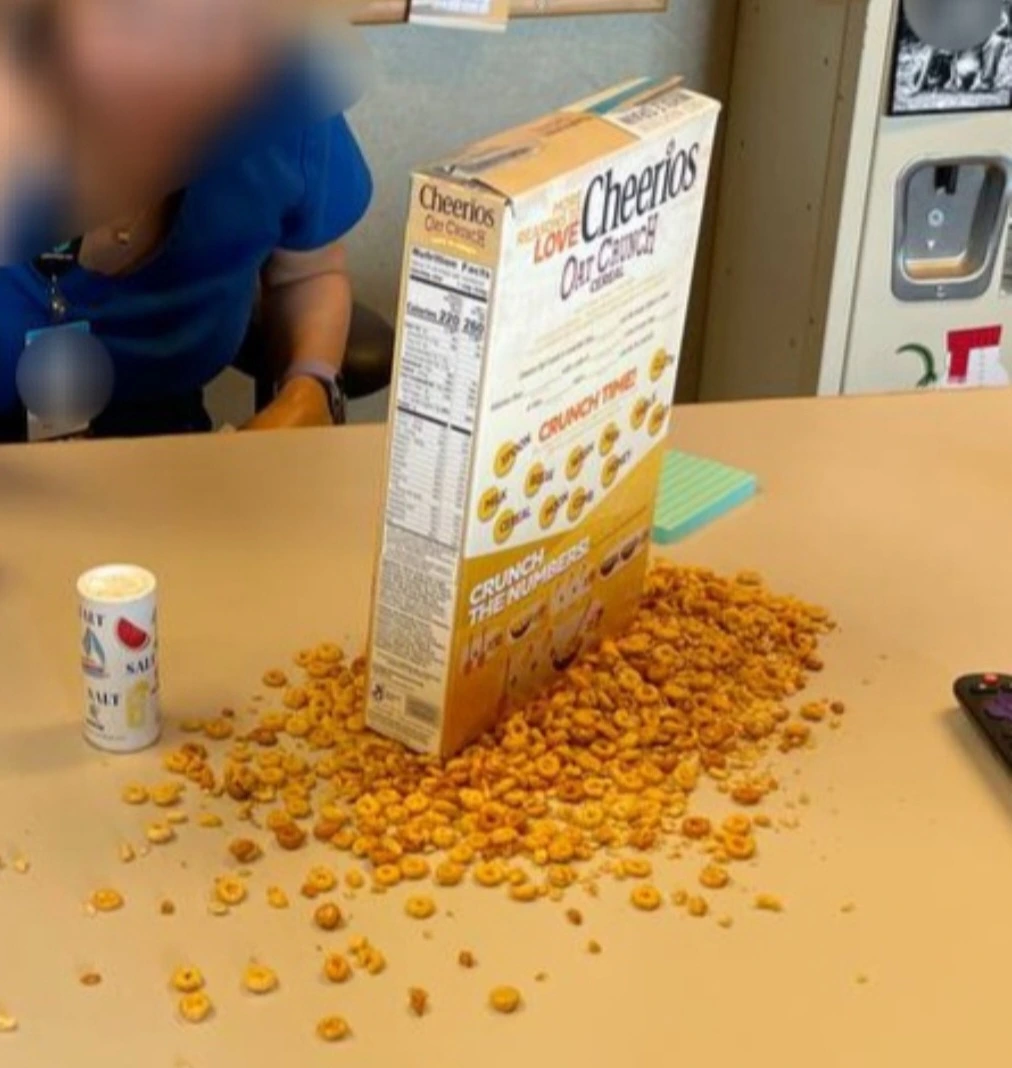 그 후, 제이슨은 내 선물을 기다리라는 의미심장한 말을 남겼고, 약 한 달 전 내 카트를 이렇게 꽁꽁 포장을 해놓았다. 또한, 경미한 결벽증이 있는 나는 출근을 하면 오피스의 탁자와 책상부터 닦고어질러진 물건 정리부터 하는데, 그 점을 이용해 오래된 시리얼 박스 아래 구멍을 뚫어 테이블 위에 올려두고소금통을 본드로 붙여놓은 것이다.