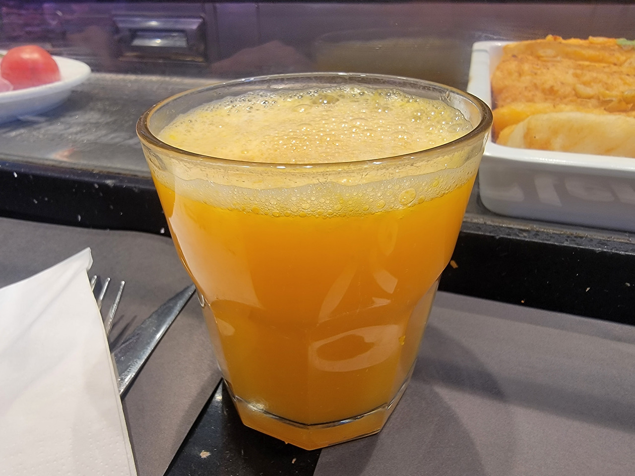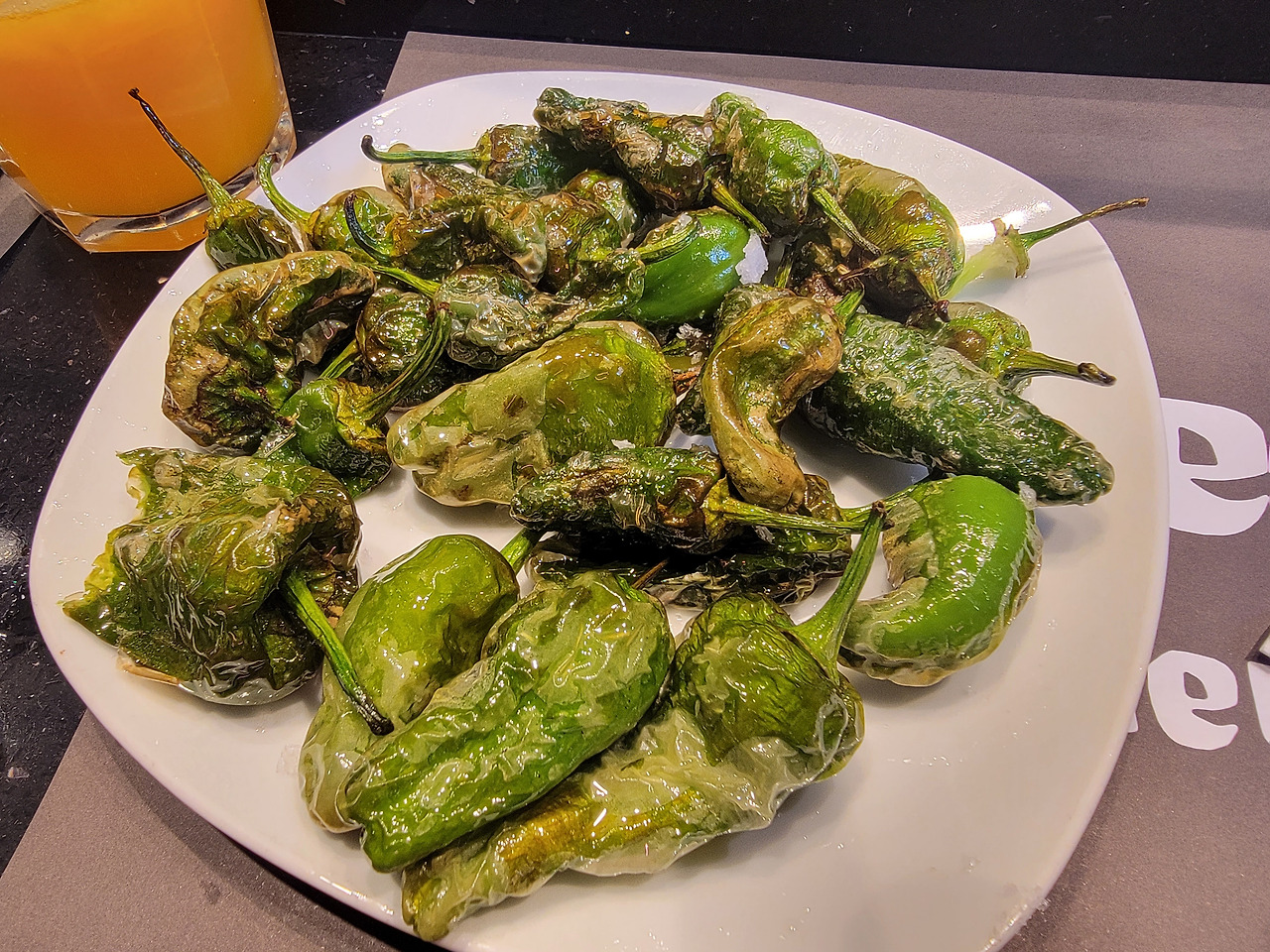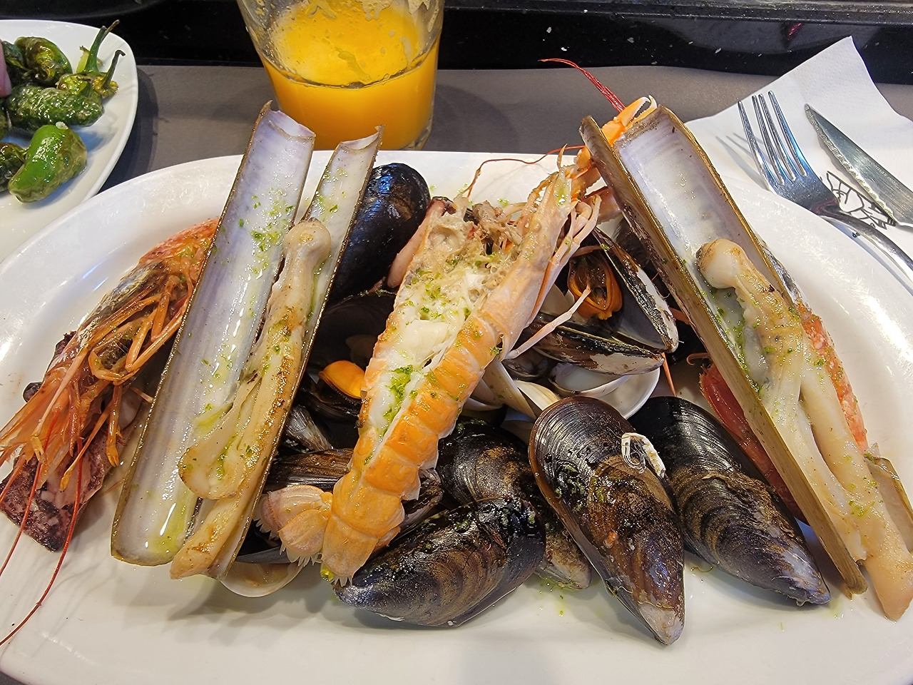 주변을 돌며 또 뭘 맛볼까를 고심하다 일단 스페인 요리 중 유명한 해산물 플래터를 하나 시켜 남편과 나눠 먹었고, 직접 짠 오렌지주스에 고추튀김까지 먹어치우니 제법 배가 불러왔다.
